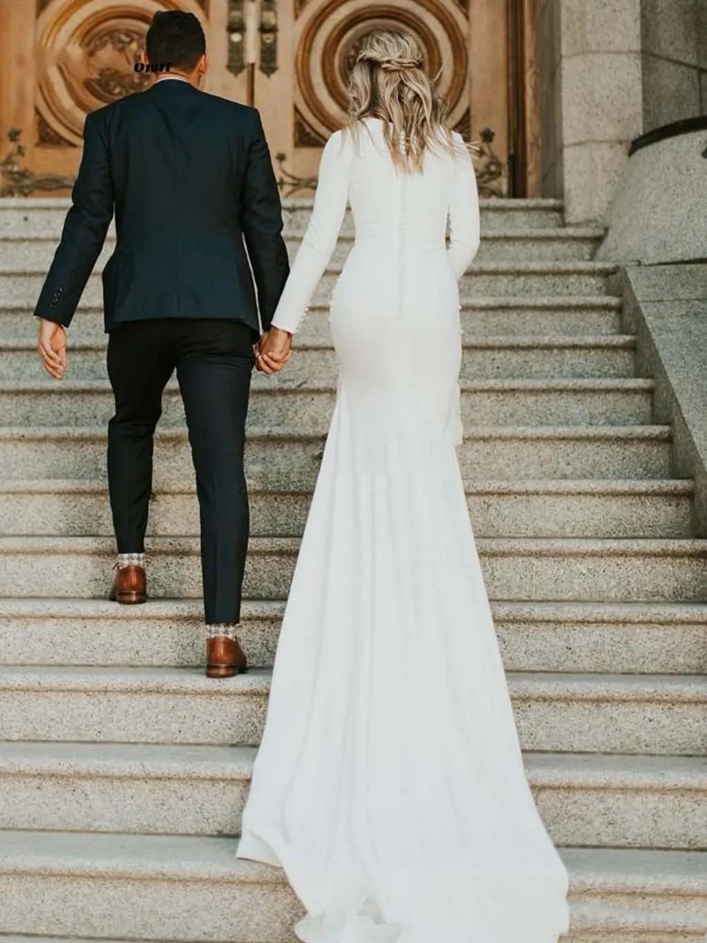 Элегантное женское атласное свадебное платье с длинными рукавами-фо...