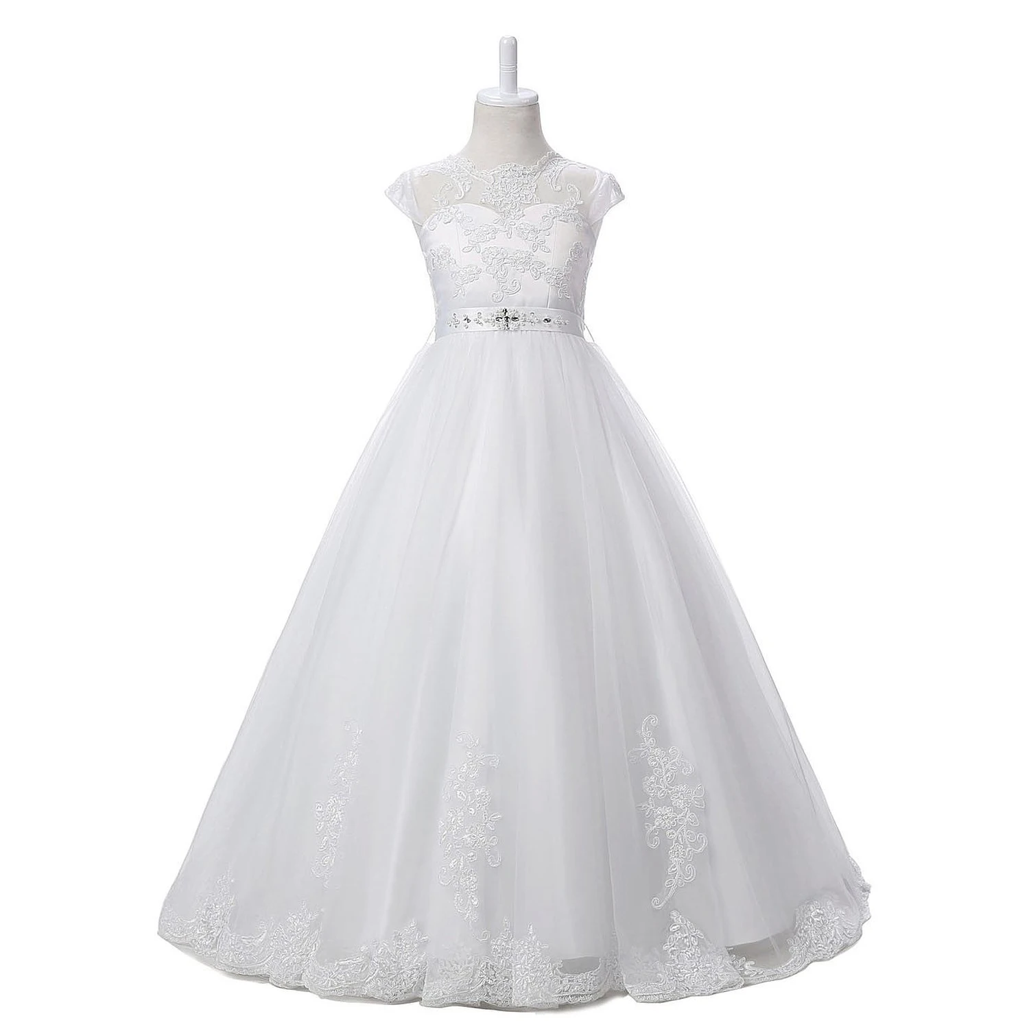 Белые пышные Свадебные Платья с цветочным узором для девочек; Кружевное платье с глубоким вырезом для первого причастия; Детские вечерние платья принцессы для дня рождения; vestido de fiesta