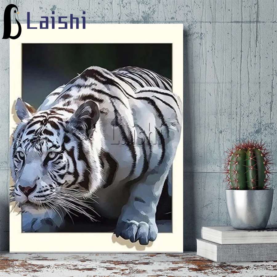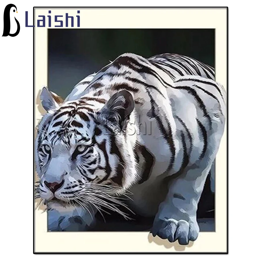 Алмазная живопись белый тигр Алмазная Вышивка Животных мозаика полная круглая Дрель Стразы картина домашний декор ручной работы искусство подарок