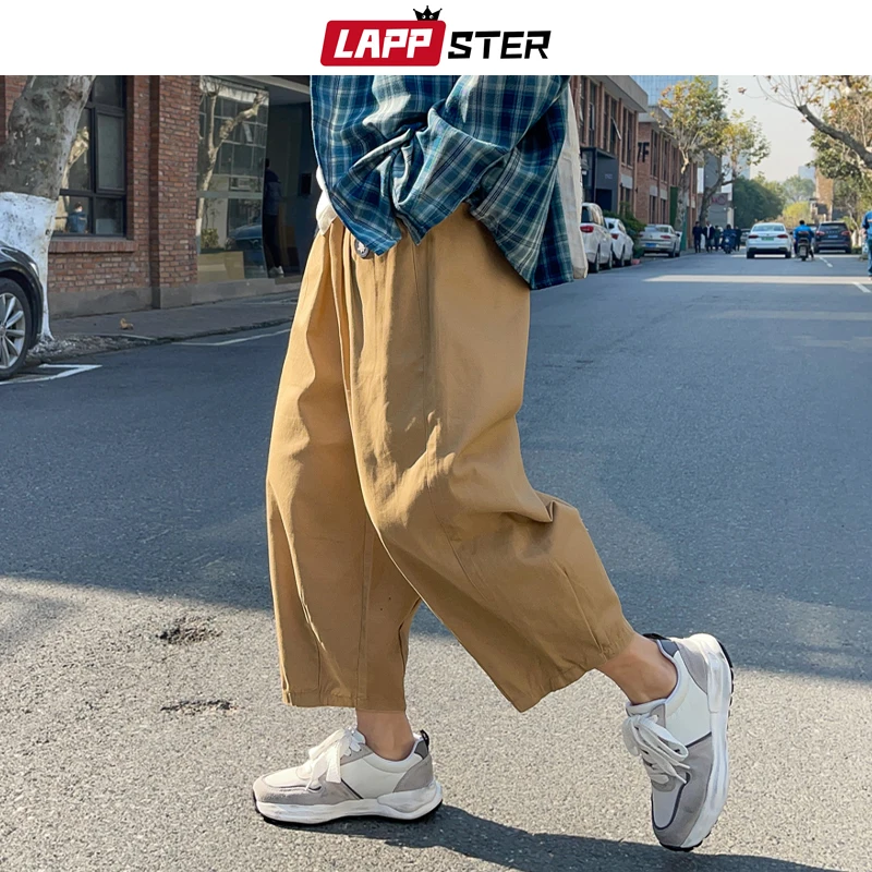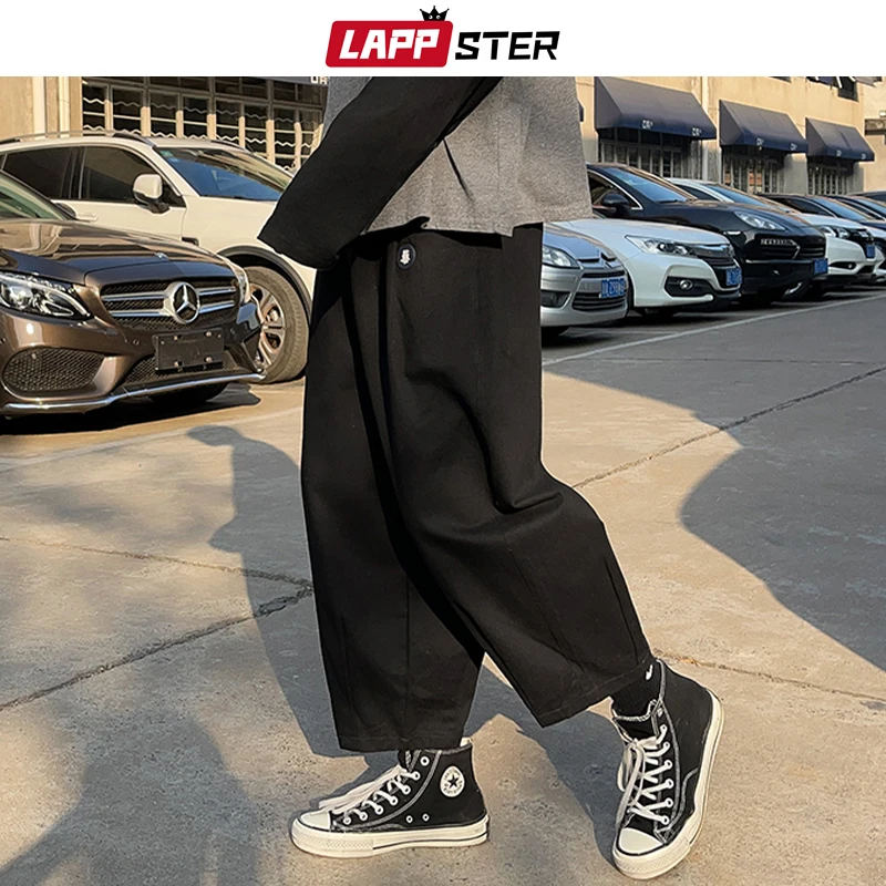 Мужские брюки-султанки LAPPSTER, Мужские Черные Мешковатые брюки-карго большого размера с широкими штанинами, мужские винтажные повседневные джоггеры, 2022