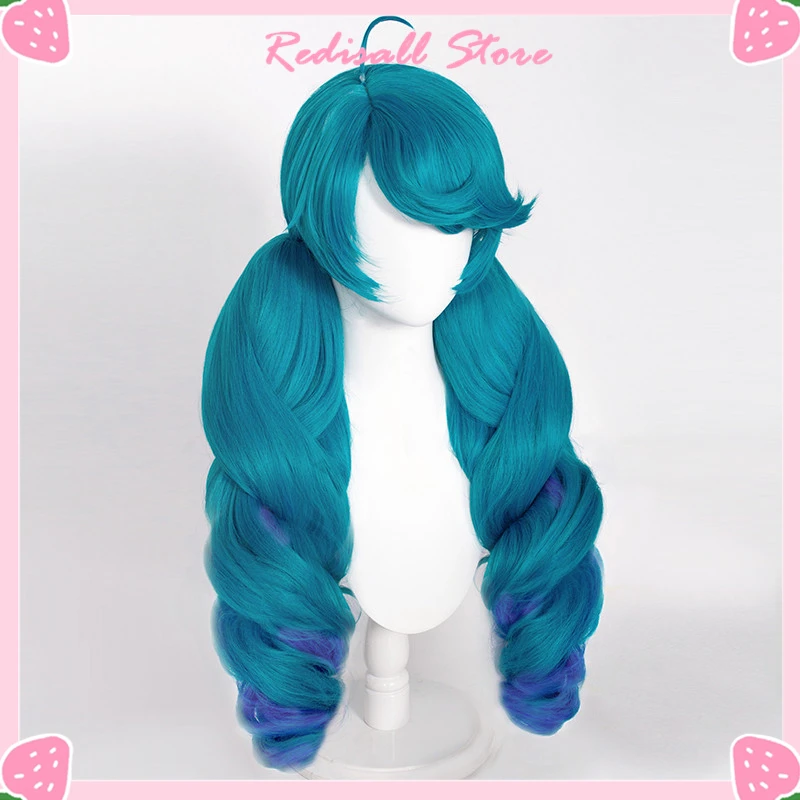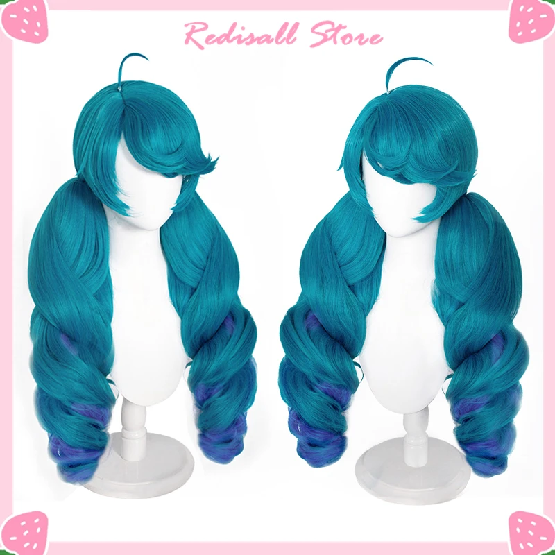 Парик для косплея LoL Gwen с градиентными синими и зелеными вьющимися хвостиками, синтетические волосы, термостойкий, для Хэллоуина, для взрослых и женщин, для ролевых игр