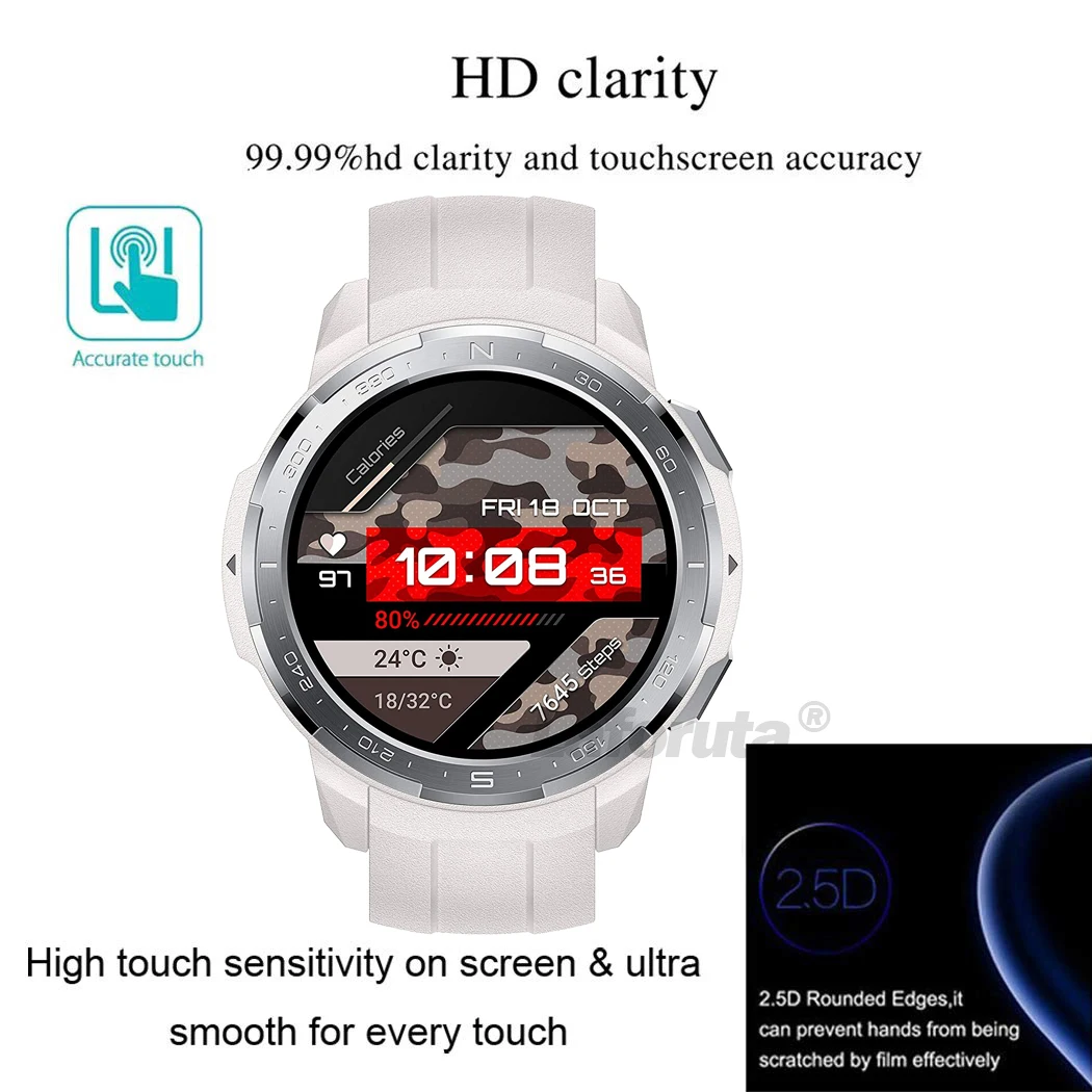 Особенности 100% Новинка! Универсальная защитная пленка из закаленного стекла для смарт-часов. Легко установить, просто отклейте наклейку, прикрепленную к пленке, правильно разместите, и пленка автоматически адсорбируется. Твердость 9H, защита от ударов, царапин, отпечатков пальцев, защищает ваши часы от повреждений от грубых и острых предметов, отличная защита при падении ваших умных часов. Водонепроницаемая и антимасляная поверхность, поэтому пятна от пота и масла нелегко оставаться на циферблате часов. В комплект поставки входят вспомогательные инструменты, две профессиональные салфетки (влажная + сухая) для удаления пыли и сохранения чистки часов. Полностью прозрачный и тонкий, высокая четкость позволяет вашим часам выполнять отличный эффект отображения (коэффициент пропускания 99.9% или более). Высокая чувствительность, прочная клейкая обратная сторона, полное склеивание, без пузырьков, не влияет на чувствительность сенсорного экрана. Технические характеристики Материал: закаленное стекло Толщина: 0,3 мм Дуга: 2.5D Прозрачность: HD, 99.9%