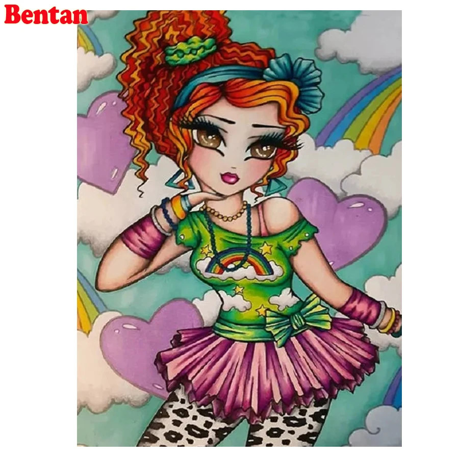 Bentan полная дрель квадратная Алмазная картина мультфильм большие глаза вышивка стразами девушка крестиком украшения для дома подарок