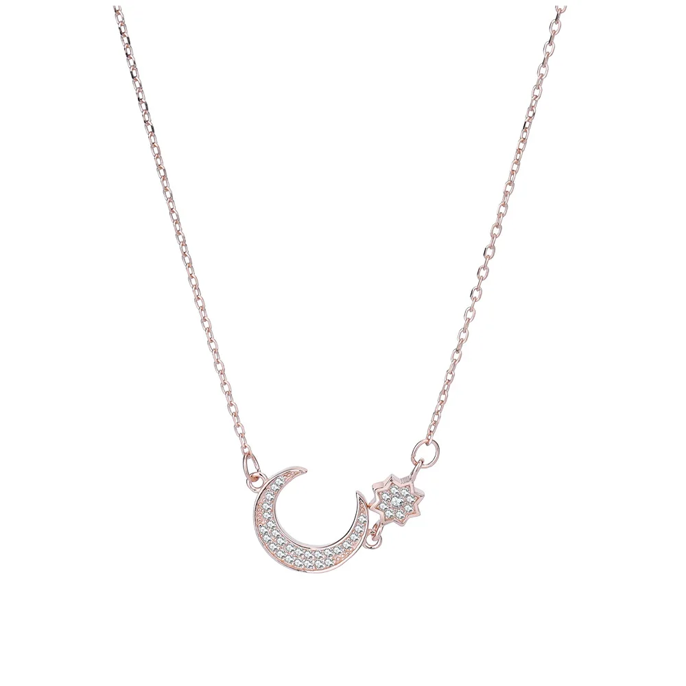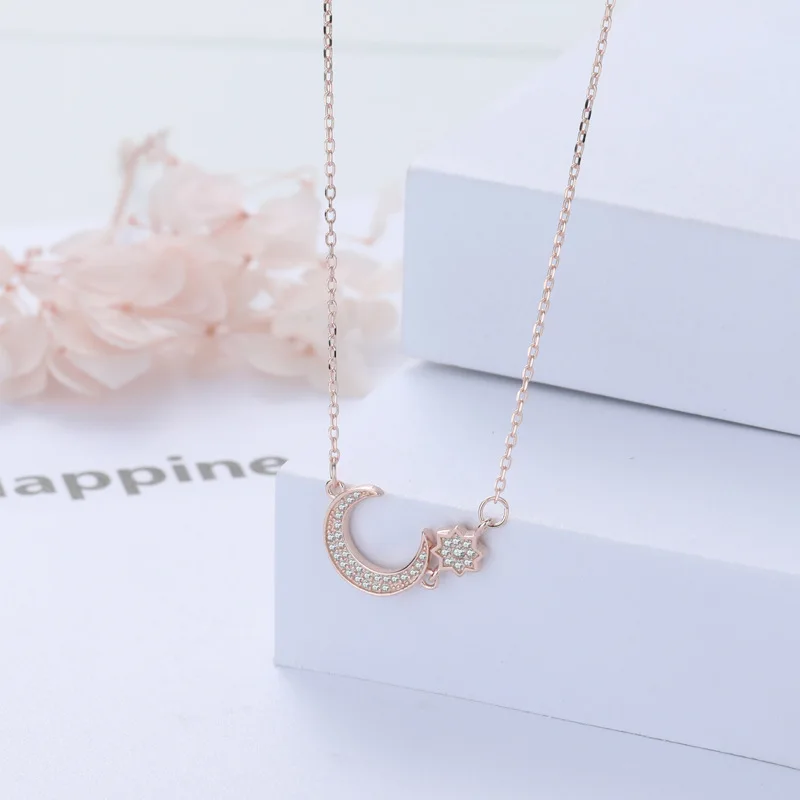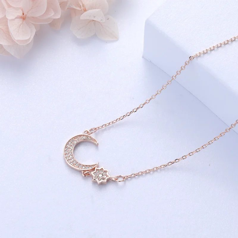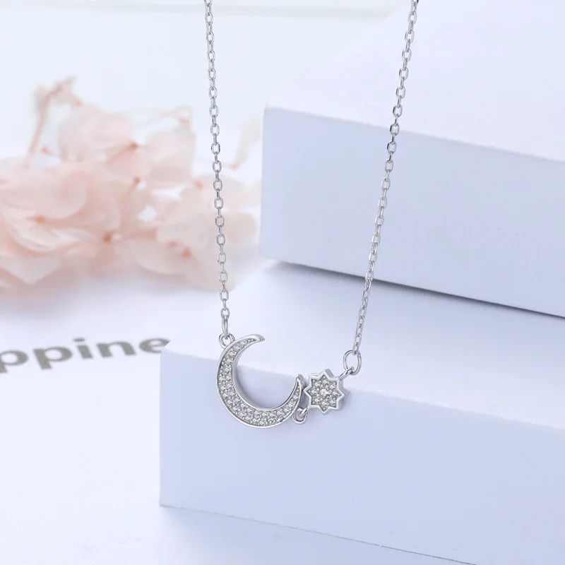 Ожерелье из настоящего стерлингового серебра S925 пробы, цепочка с подвеской в виде Луны и звезды, чокер, ошейник для женщин, ювелирные изделия на годовщину Дня святого Валентина для женщин