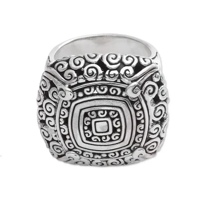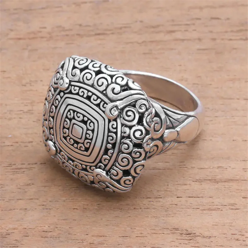 Богемное винтажное ювелирное изделие Ретро широкое серебряное кольц...