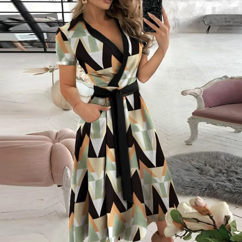 Платье женское короткое офисное с отложным воротником, элегантный п...