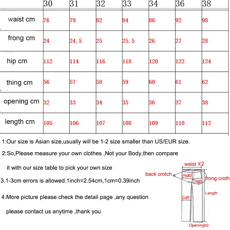 1: наш размер азиатский, обычно на 1-2 размера меньше, чем американский/европейский.2: поэтому, пожалуйста, измерьте свою одежду, а не тело, а затем сравните ее с нашей таблицей размеров, чтобы выбрать свой собственный размер3,1-3 см ошибки является allowed.1inch = 2,54 см, 1 см = 0,39 дюймов