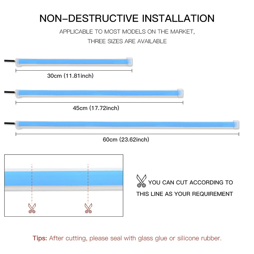 Запуск сканированияТип: светодиодный светильник дневного света для автомобиляМатериал: силиконВходное напряжение: 12 ВПодходит: Универсальный для всех автомобилейСветильник Тип: течет поворотаРабочая температура: -40 ~ 50Светильник Толщина: 0,3 см (около 0,12 дюймов)Светильник Размеры: 30 см/45 см/60 см (около 11,81 дюймов/17,72 дюймов/23,62 дюймов)