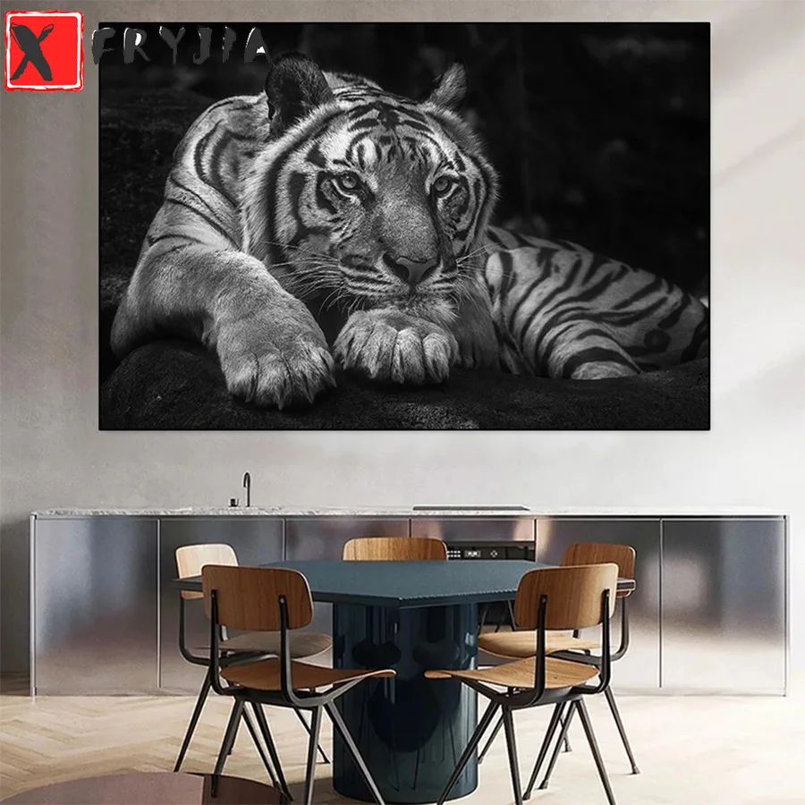 Алмазная живопись, черно-белое животное, тигр 5d, вышивка крестиком, алмазная вышивка, мозаика, подарок, домашний декор, картина для вышивки