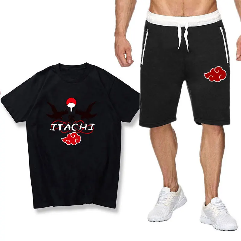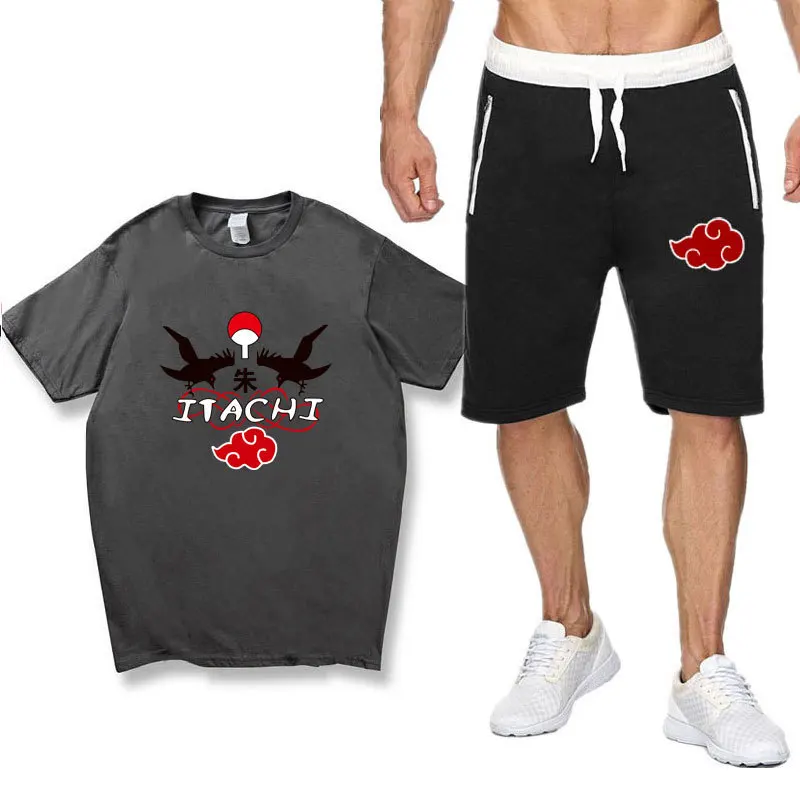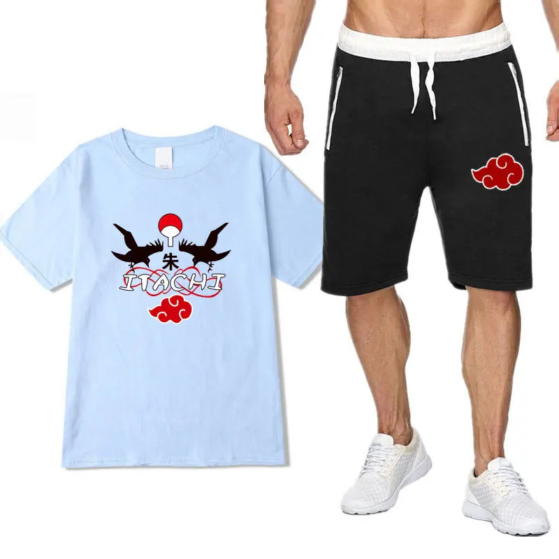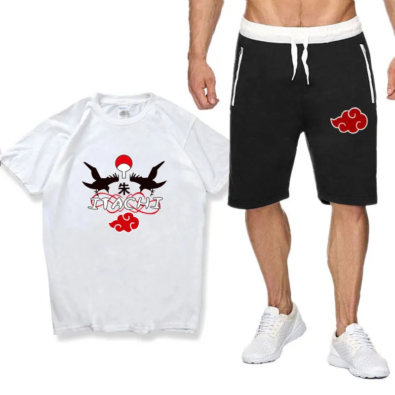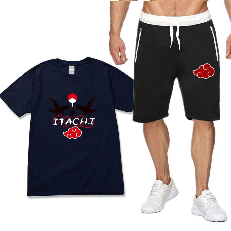 Мужская Модная и удобная спортивная одежда Аниме Kakashi Sasuke, летний костюм, футболка с коротким рукавом + шорты, комплект из 2 предметов