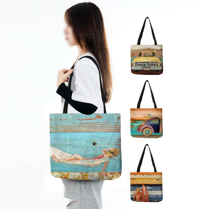 Винтажная модная сумка-тоут с автомобильным принтом, льняные сумки ...