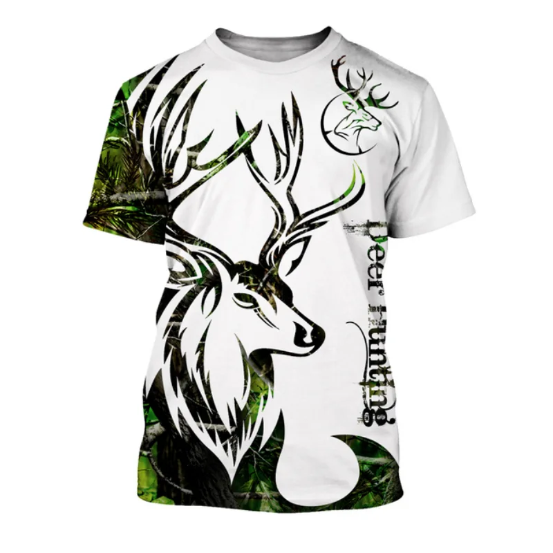 Футболка мужская с 3D принтом оленя, Охотничья рубашка, Повседневная, с коротким рукавом
