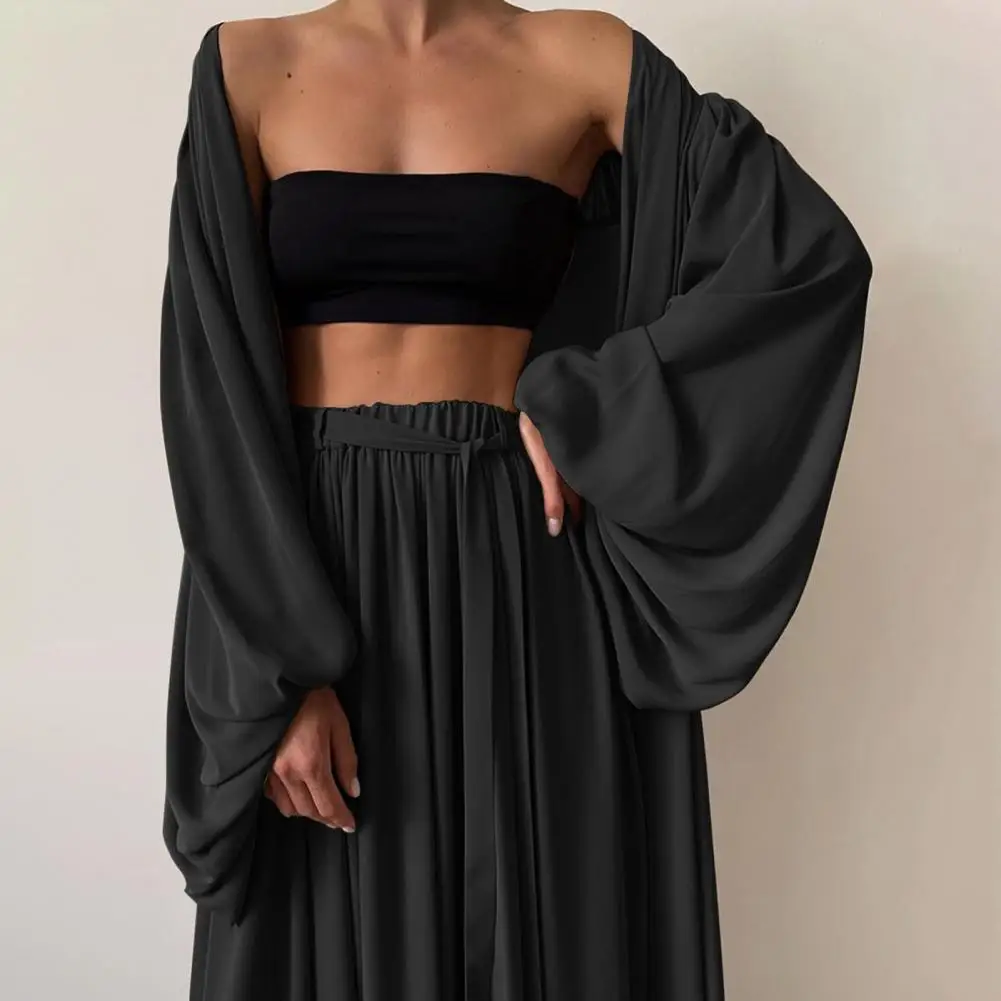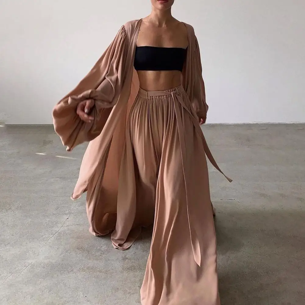 Костюм-тройка женский Мягкий, кардиган с запахом и брюки с высокой талией, повседневный простой костюм для спорта, домашняя одежда, весна