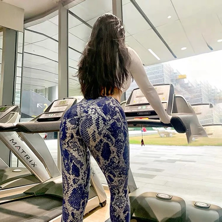 Женские колготки, спортивные штаны с высокой талией, Удобные Леггинсы для йоги со змеиным принтом