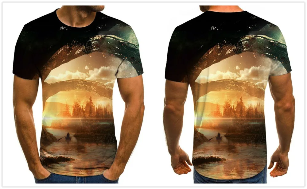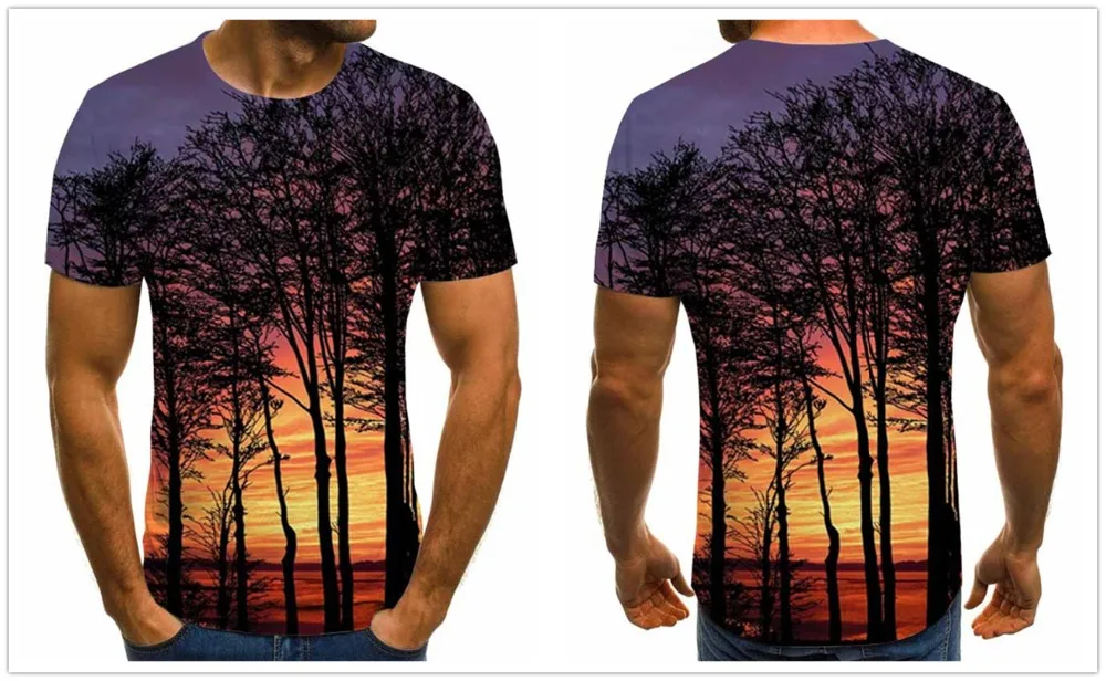 Мужская футболка с 3D рисунком леса, повседневные топы в стиле Харадзюку, летняя Модная рубашка с круглым вырезом, уличная одежда футболка с графикой