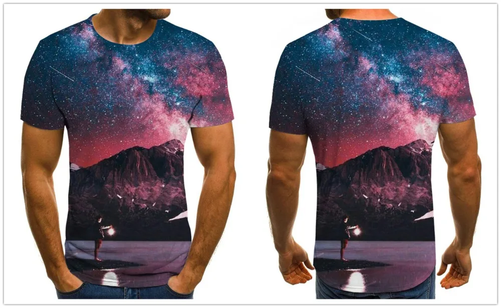 Футболка мужская с 3D-принтом звездного неба, модная рубашка с коро...