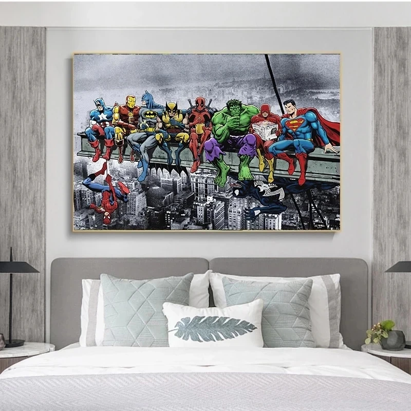 Картина на холсте с героями мультфильмов Marvel, Человек-паук, плак...