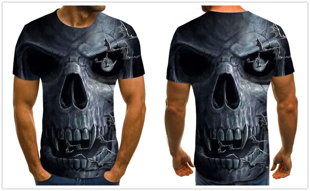 Новинка 2020, страшная Мужская футболка, топы из серии череп, модная летняя Повседневная рубашка с коротким рукавом и круглым вырезом, модная уличная одежда