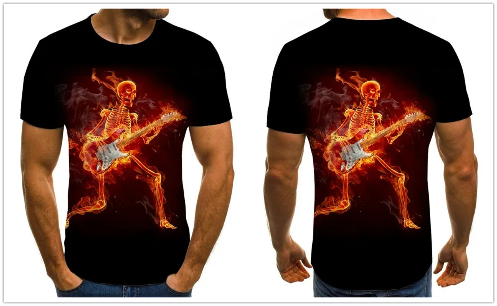 Мужские футболки с черепом, гитарой, 3d-рубашки в стиле панк, летня...