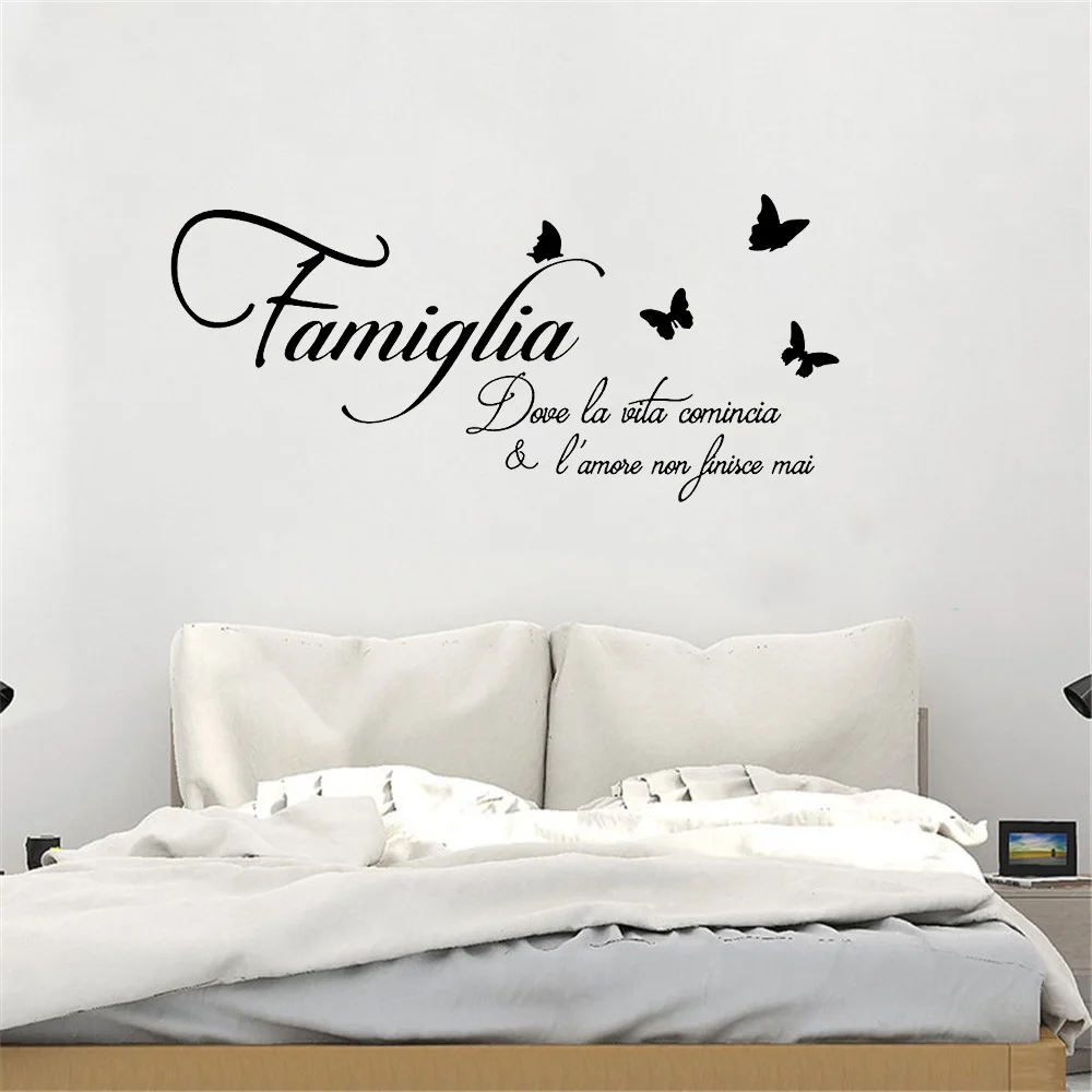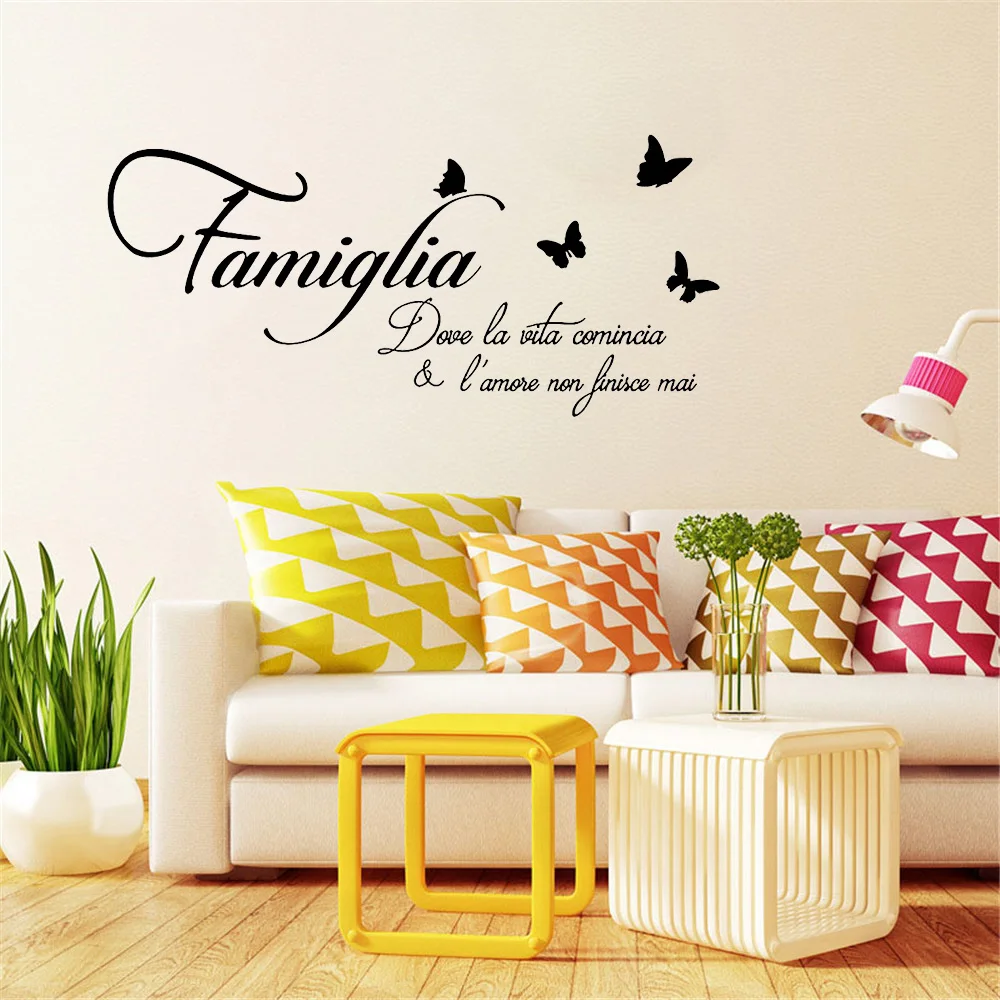 Итальянская Семья любовь никогда не конец Цитата Виниловая наклейка на стену надпись художественная Наклейка Настенная Слова домашний декор свадебное украшение для гостиной