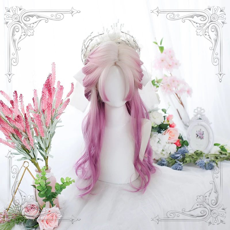 Парик в стиле лолита для косплея, с градиентными розовыми волнистым...