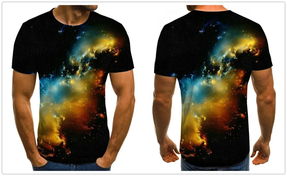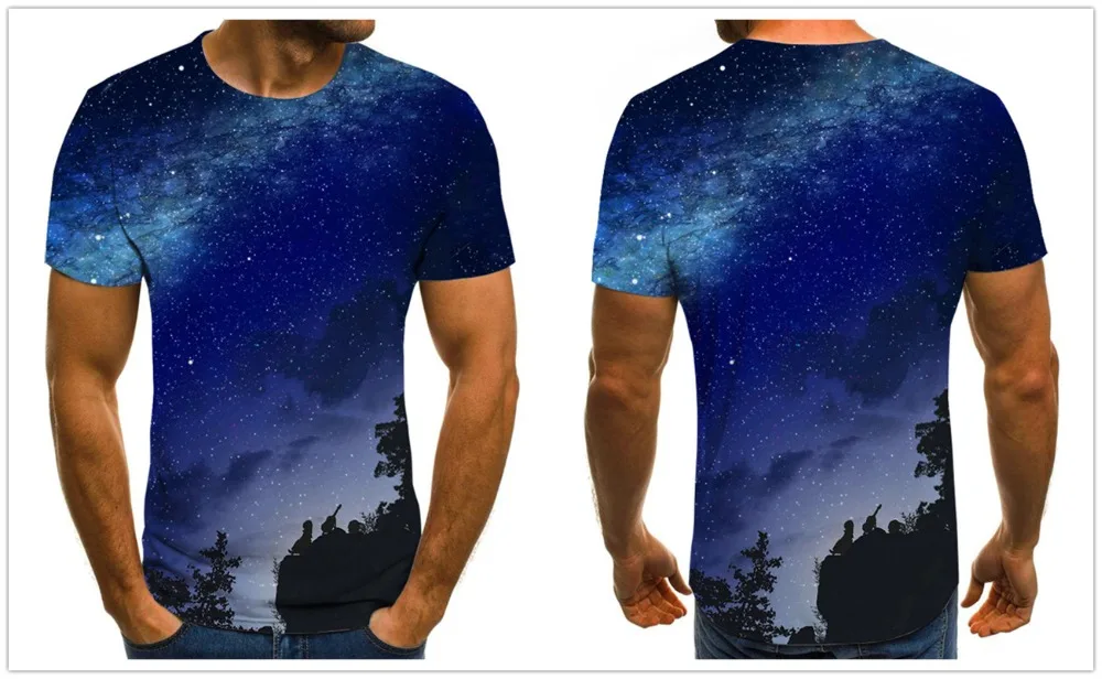 Звездное небо узор Мужская футболка мужская Повседневная Топ летние 3DT-Shirts! Модное платье с О-образным вырезом футболка размера плюс, уличная одежда