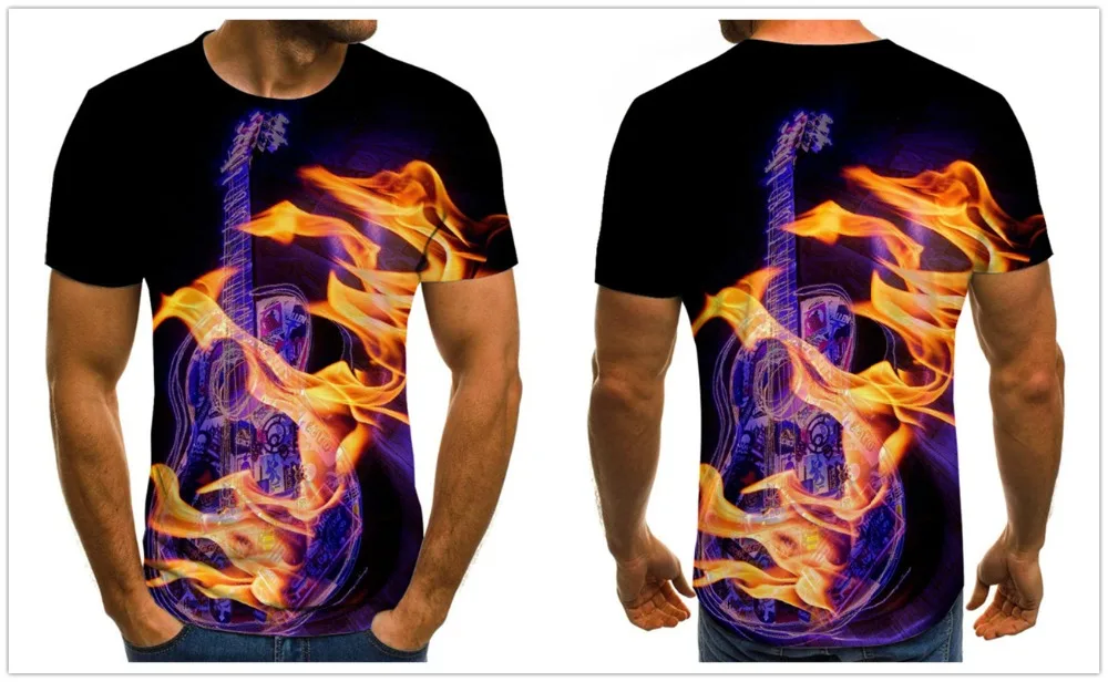 Мужские футболки с черепом, гитарой, 3d-рубашки в стиле панк, летня...