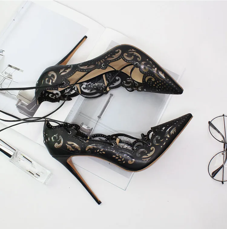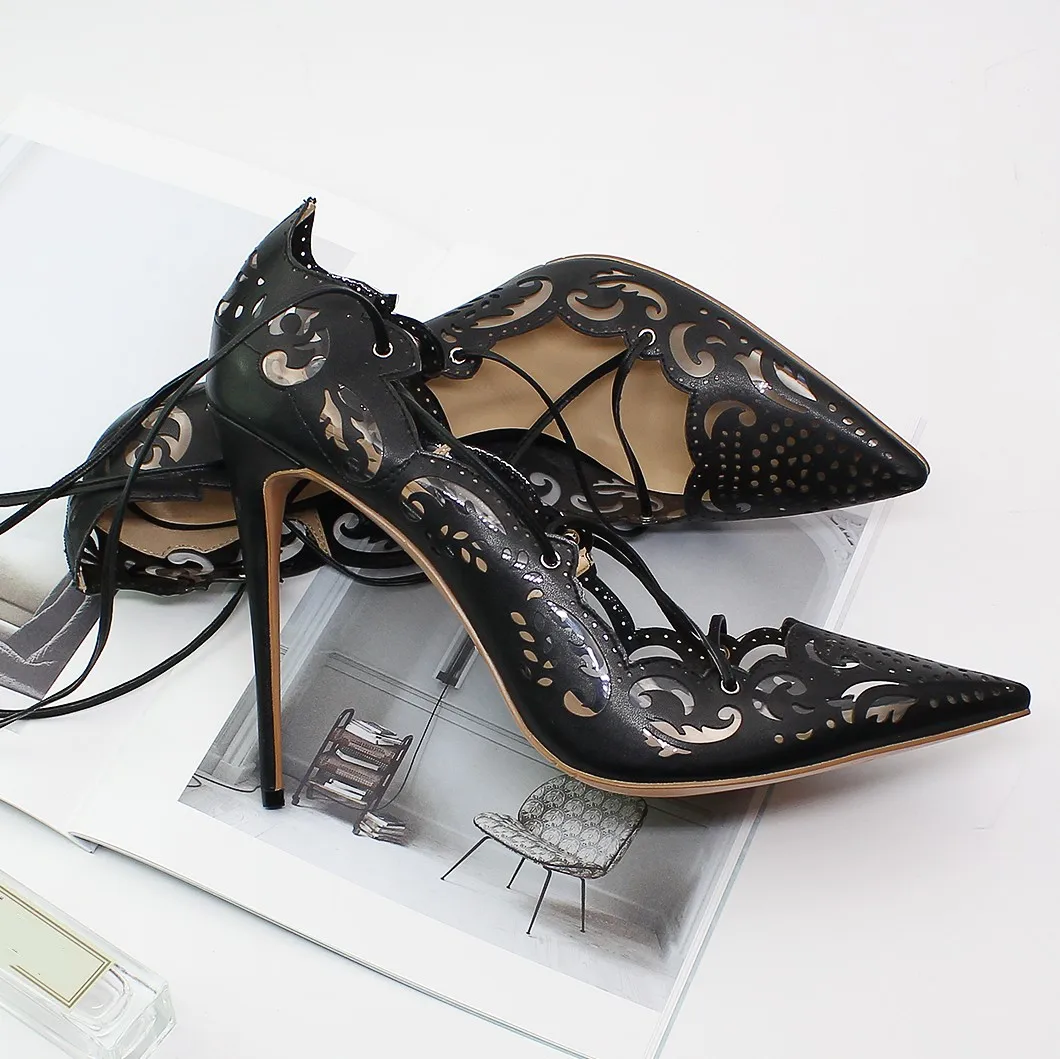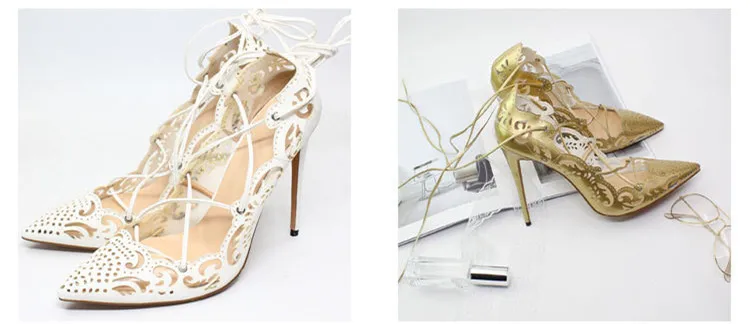 Туфли женские из натуральной кожи, заостренный носок, на тонком высоком каблуке, на шнуровке, пикантная Свадебная обувь, D007B