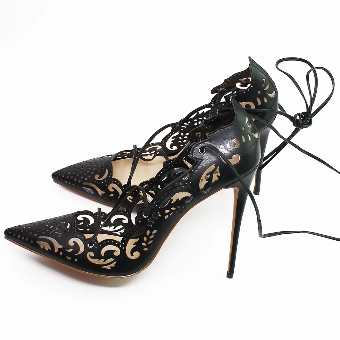 Пикантные женские туфли с острым носком; Женские туфли-лодочки на высоком тонком каблуке со шнуровкой; Свадебные женские туфли из натуральной кожи; Zapatos Mujer