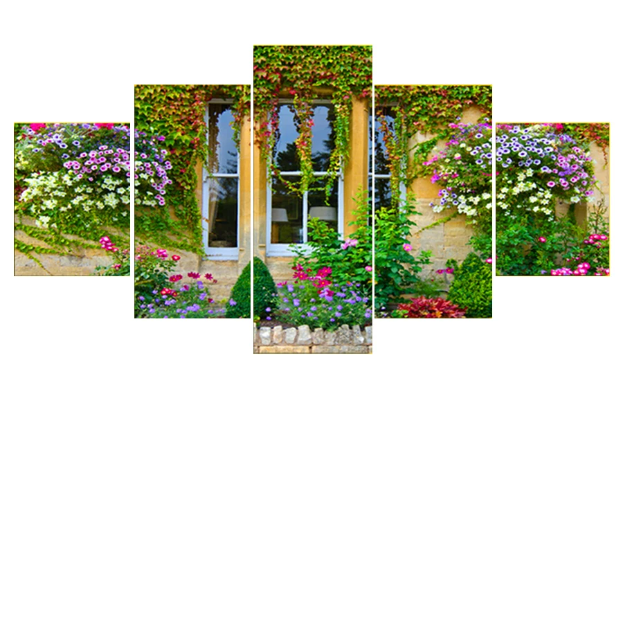 Набор для алмазной живописи, 5 панелей, оконный пейзаж, полная квадратная круглая Алмазная вышивка, цветочный сад, настенные картины, декор для гостиной