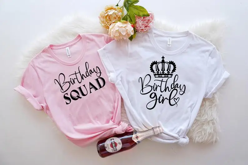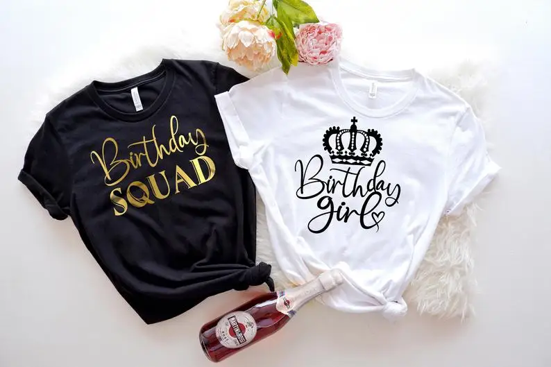 Для девочек на день рождения с принтами "Отряд футболки Harajuku футболка со смешным буквенным Хлопковая женская футболка с коротким рукавом топы, футболки размера плюс с круглым вырезом в стиле унисекс, одежда