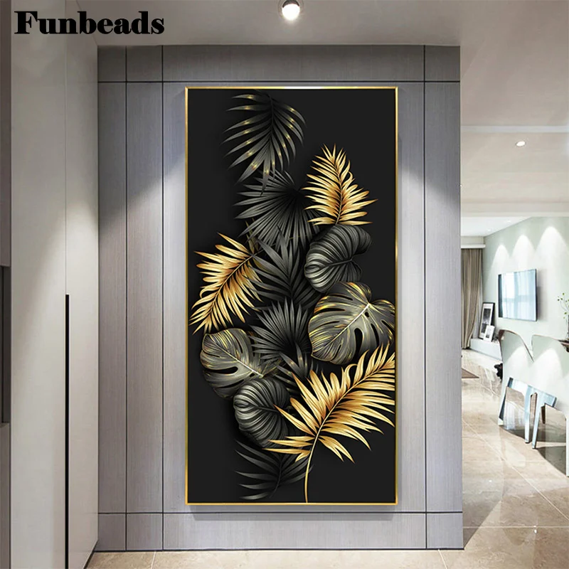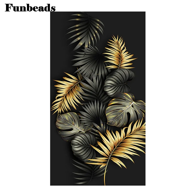 Картина из страз "сделай сам", современное искусство, золотистые серые листья, алмазная вышивка 5d мозаичное бриллиантовое рукоделие, Набор для вышивки крестом FF3967