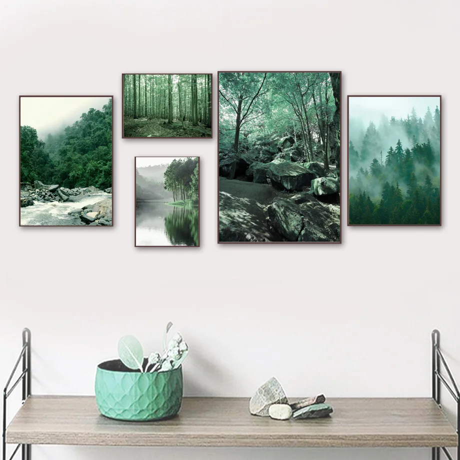 Настенная картина с изображением зеленых лесов, озер, дороги, пальмовых листьев, скандинавские постеры и принты для гостиной, Декор, настенные картины
