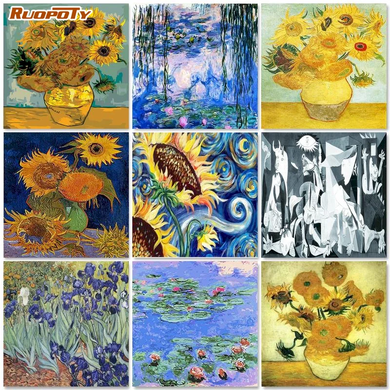 RUOPOTY алмазная живопись цветок Ван Гога Вышивка крестом полная квадратная Алмазная вышивка Подсолнух распродажа Стразы картины для дома De
