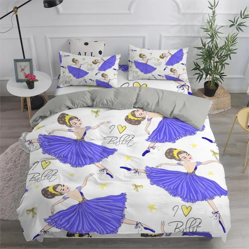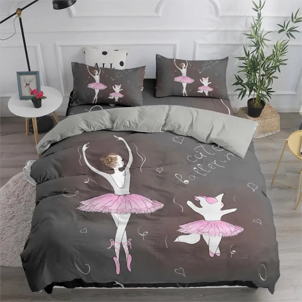 Комплект постельного белья для девочек, с изображением балерин, пододеяльник, детский, с мультяшным принтом, для милых балерин, принцесс, пододеяльник для королевы, короля, одного размера