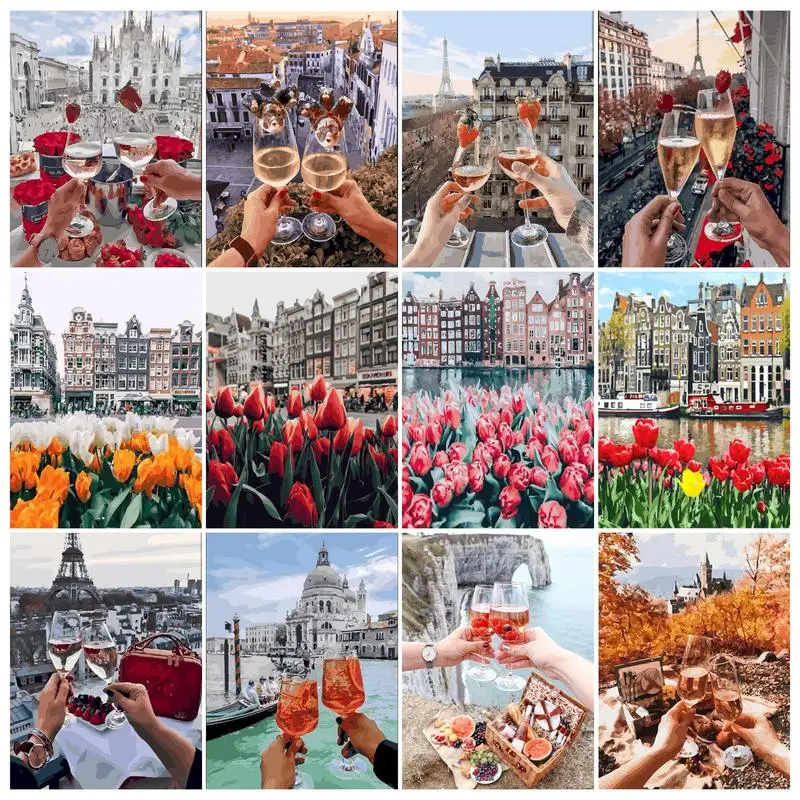 PhotoCustom городской пейзаж маслом Краски ing по номерам декорации DIY Краски по номерам на холсте 60x75 см бескаркасная рисовать номер Декор