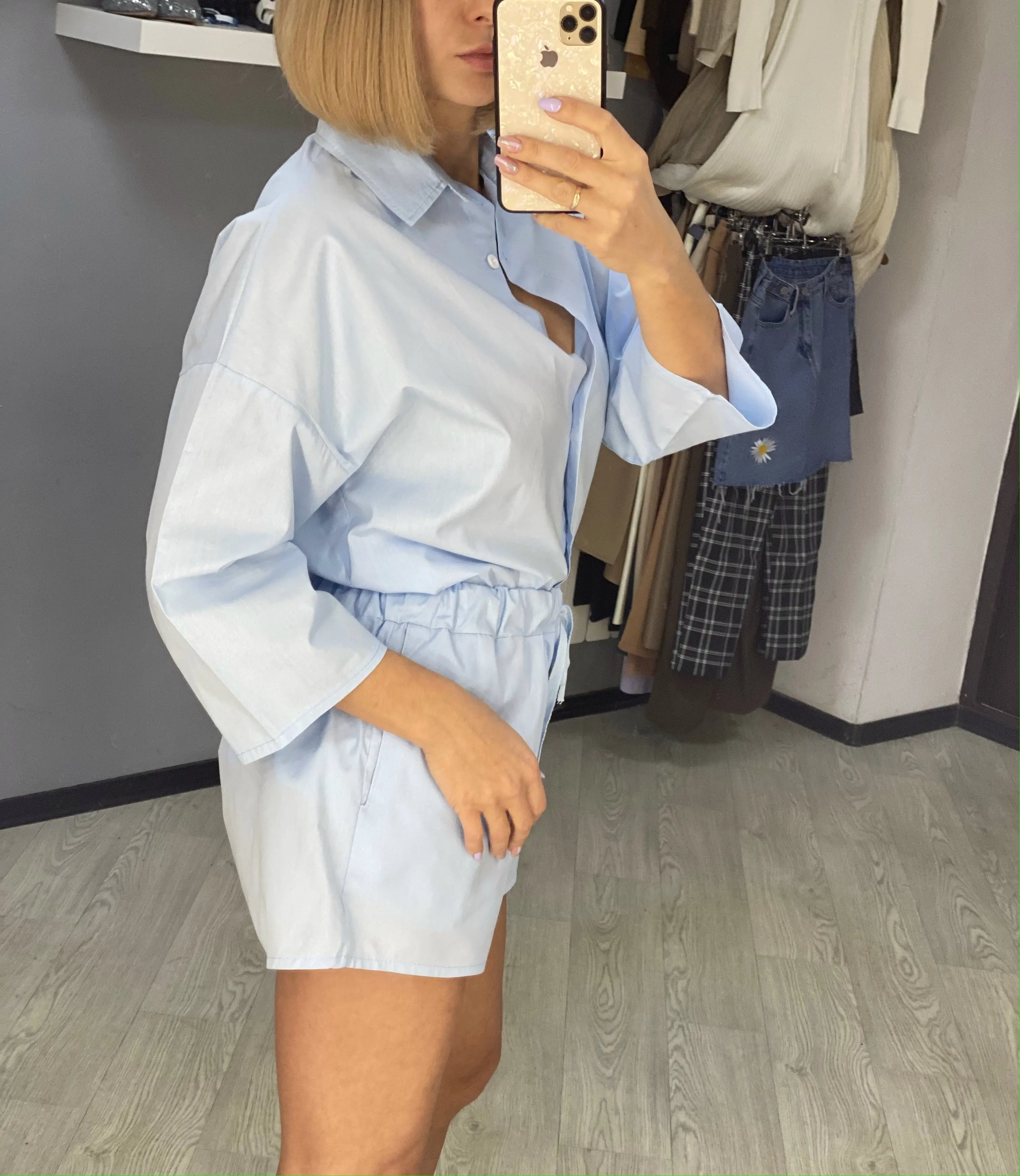 Важные моменты: ✅на мне размер S, мои параметры 92-68-92, рост 165 см, сел свободно , подойдёт и на большие параметры ✅размерный ряд S-L ✅у продавца костюм в 3-х цветах ✅костюм состоит из 2-х предметов, каждый кожно носить по отдельности ✅костюм свободного кроя ✅рубашка застегивается на пуговицы, рукав 3/4 ✅шорты на резинке, есть шнурок ✅качество превосходное: швы и строчки ровные, нитки не торчали ✅состав: полиэстер, ткань плотная и качественная ✅доставка 3 недели ✅цена на момент заказа 1500 руб. К покупке рекомендую!