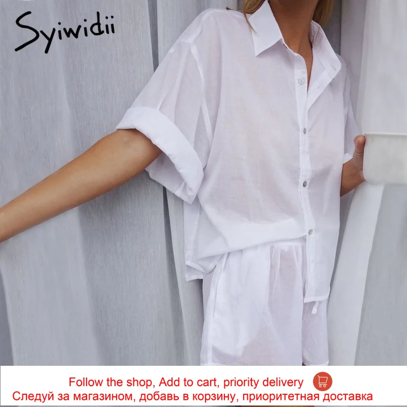 Женский комплект из двух предметов Syiwidii, рубашка с коротким рукавом и шорты, для тренировок, для офиса, голубого и фиолетового цветов, для лета, 2021