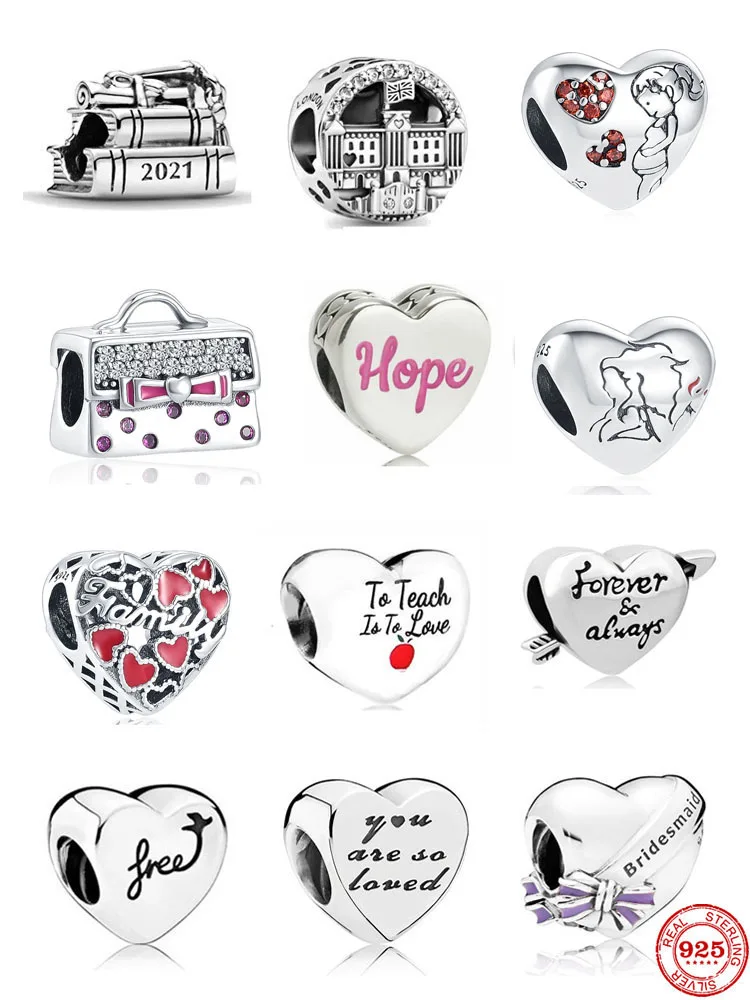 Новые Европейские Бусины без сердца 2021 градусов, розовые надписи сделай сам, изящные бусины, подходят к оригинальным шармам, серебряные браслеты 925 пробы, ювелирные изделия F050