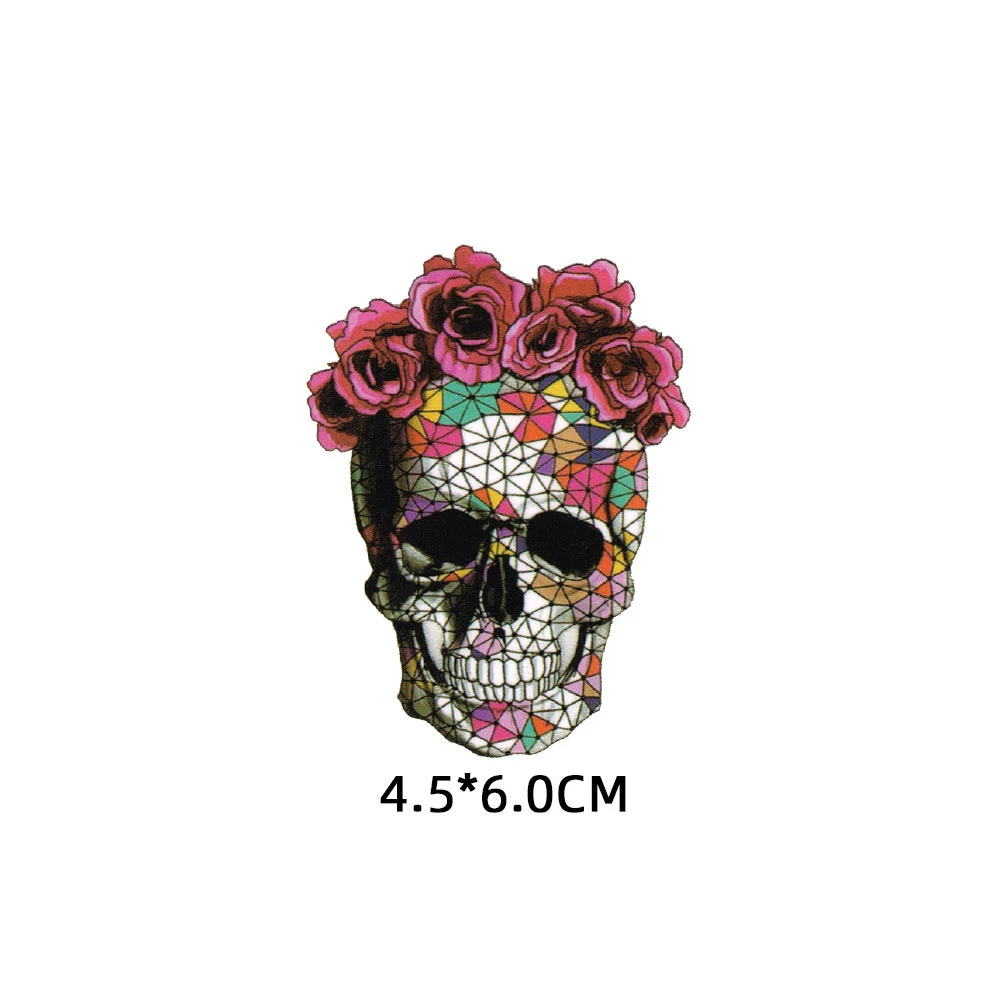 Термоклейкие нашивки с изображением черепа, термоклейкие нашивки для одежды сделай сам, термонаклейки на одежду, Цветочная аппликация в стиле панк