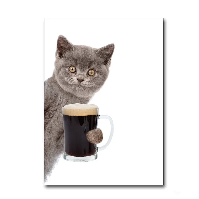 Картина на холсте с изображением милого мопса собаки и кота, забавные животные, удерживающие чашу, принты на стену, художественный декор, плакаты, эстетическое украшение комнаты icon star icon star icon star icon star icon star