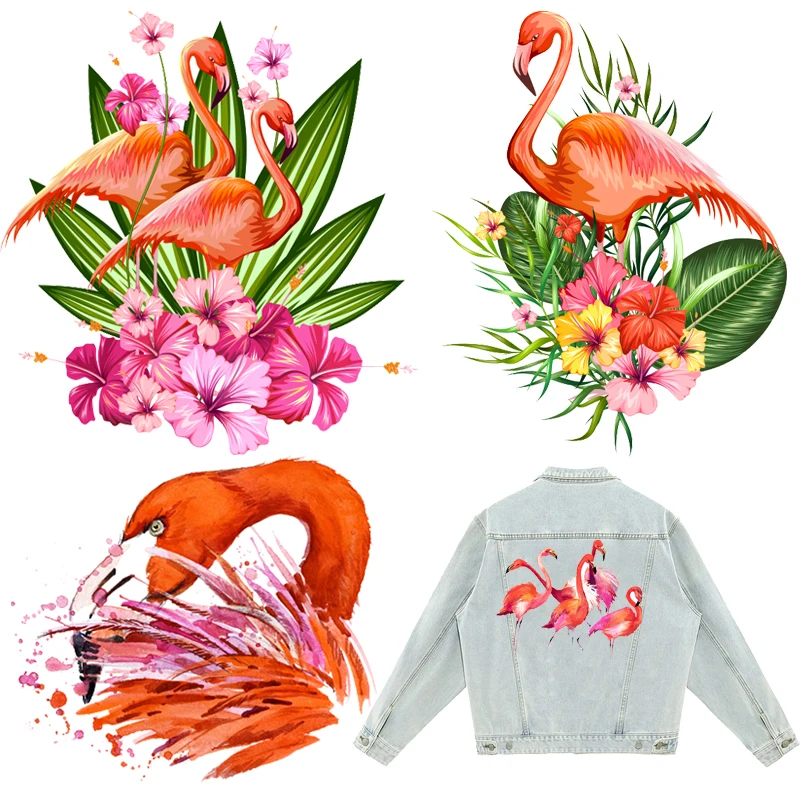 Фламинго патч Железный На переноске для одежды термоклей Патчи Diy термо наклейки на одежду цветок аппликация для куртки