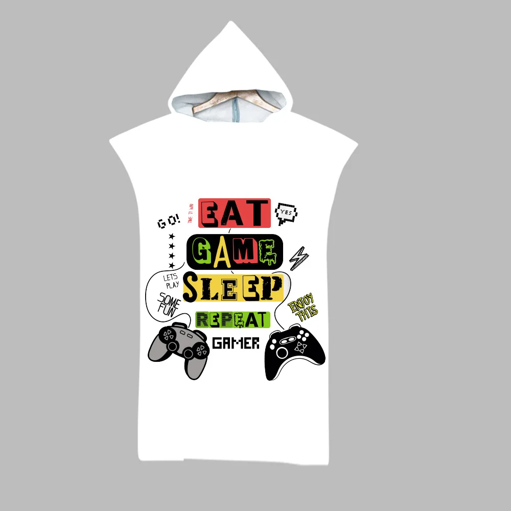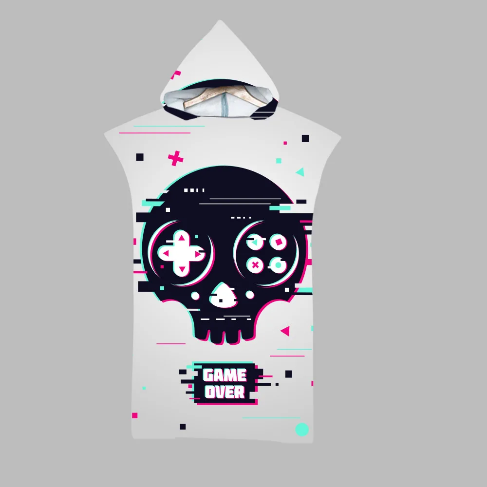 Банное полотенце с капюшоном из микрофибры, пончо с 3D принтом для игр, летнее пляжное полотенце для серфинга, банный Халат