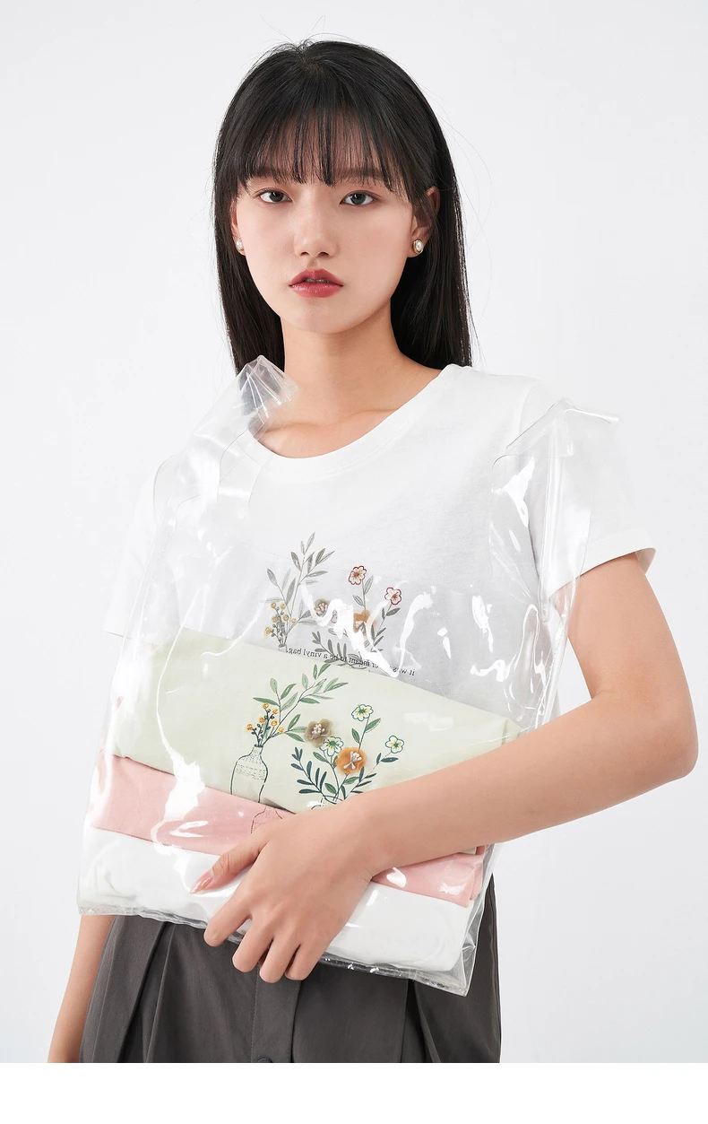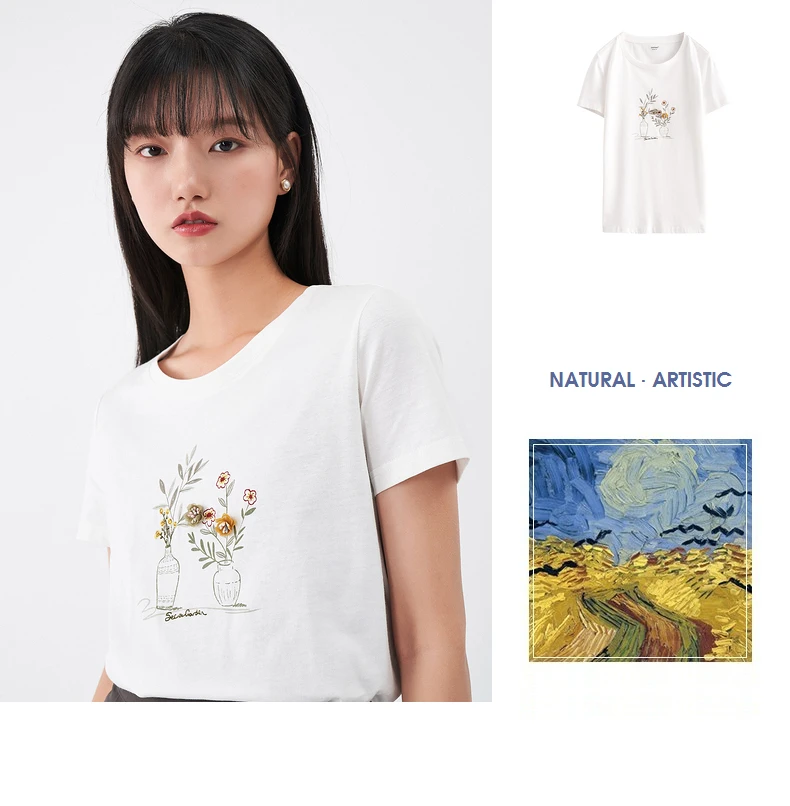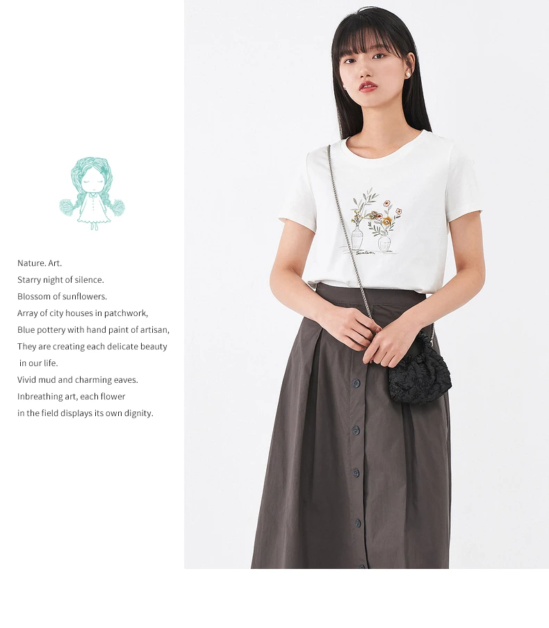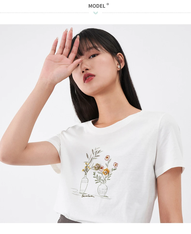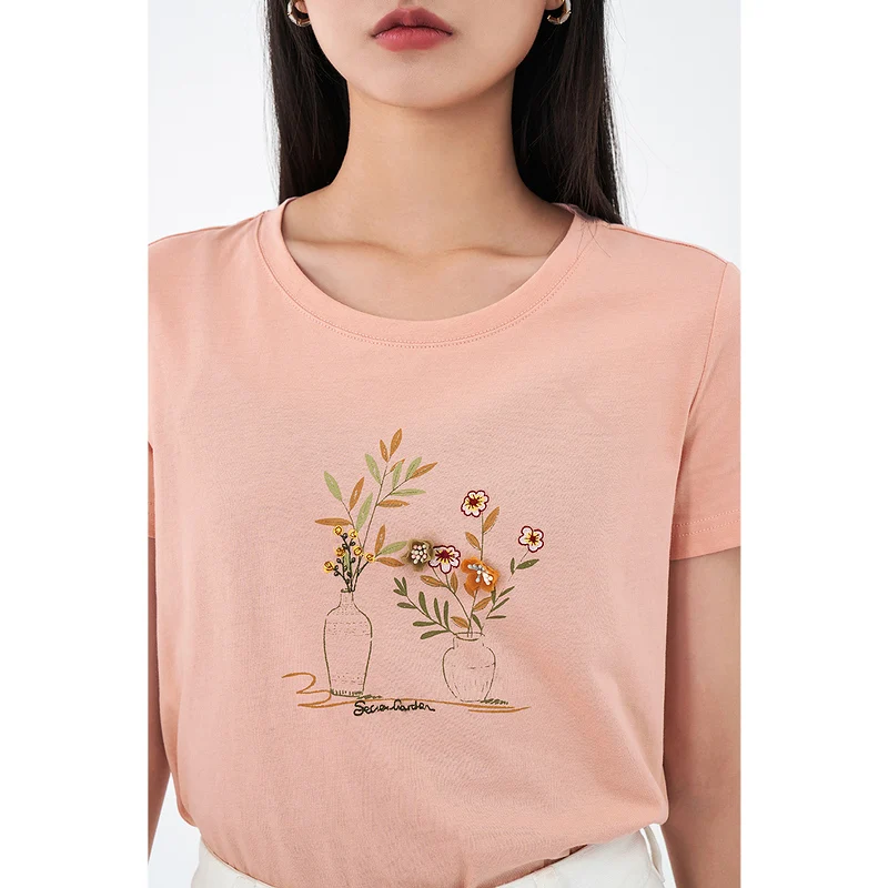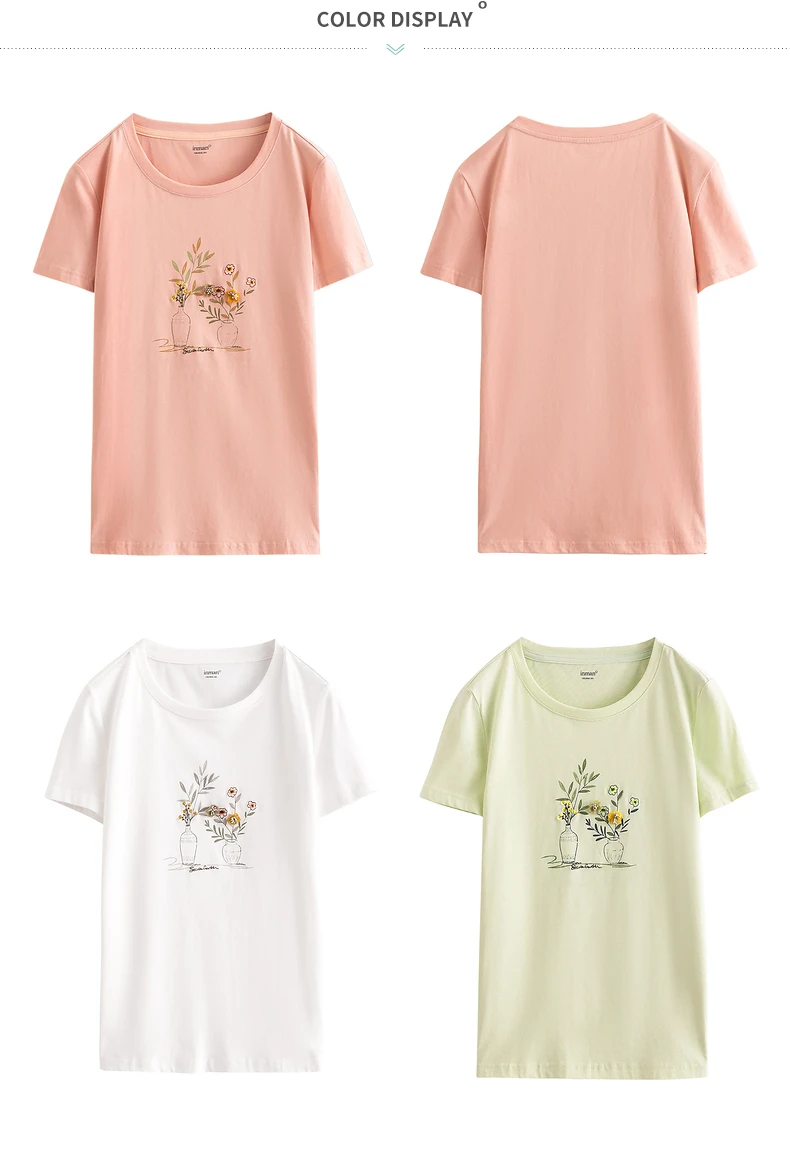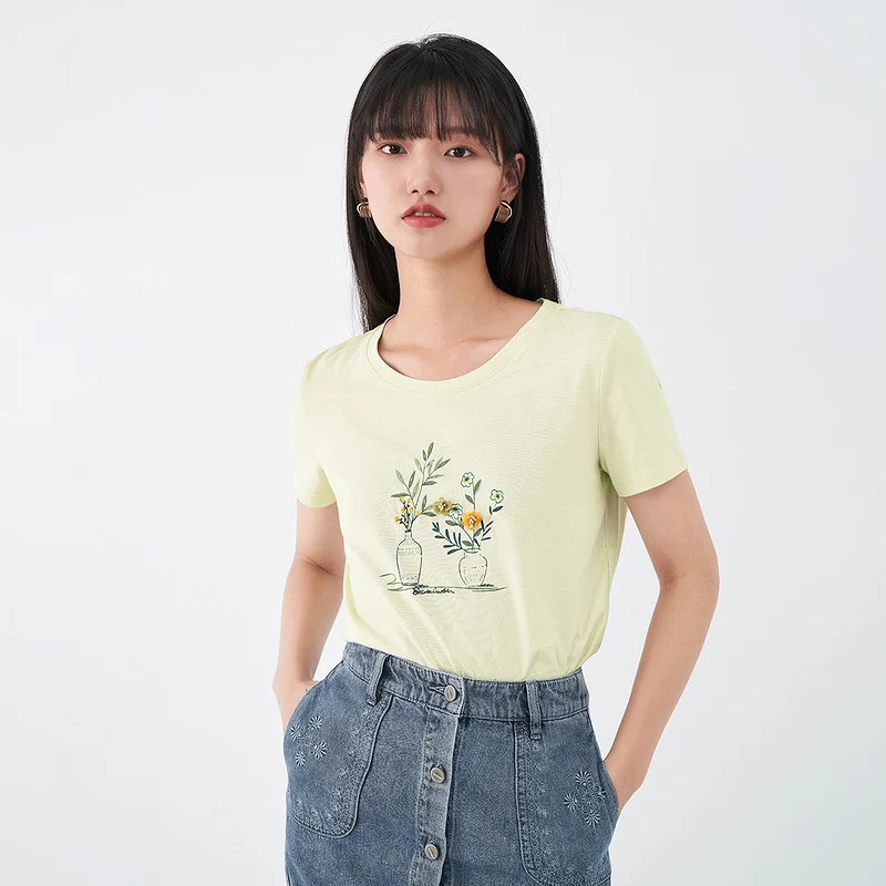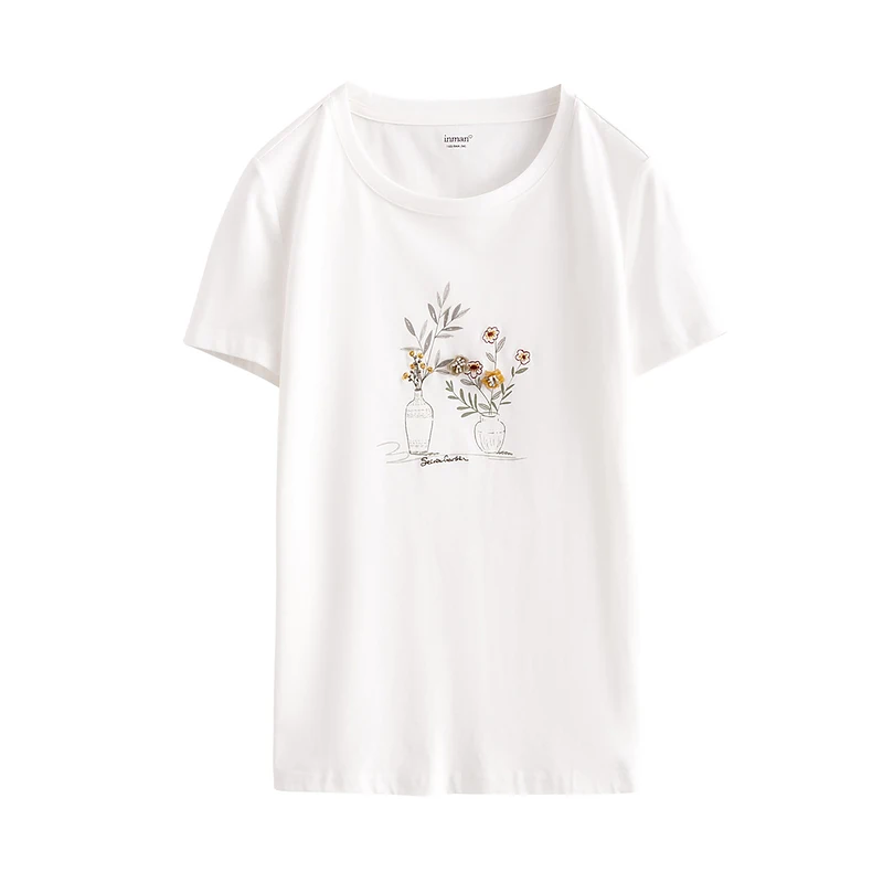 Женская летняя футболка с круглым вырезом и трехмерной вышивкой