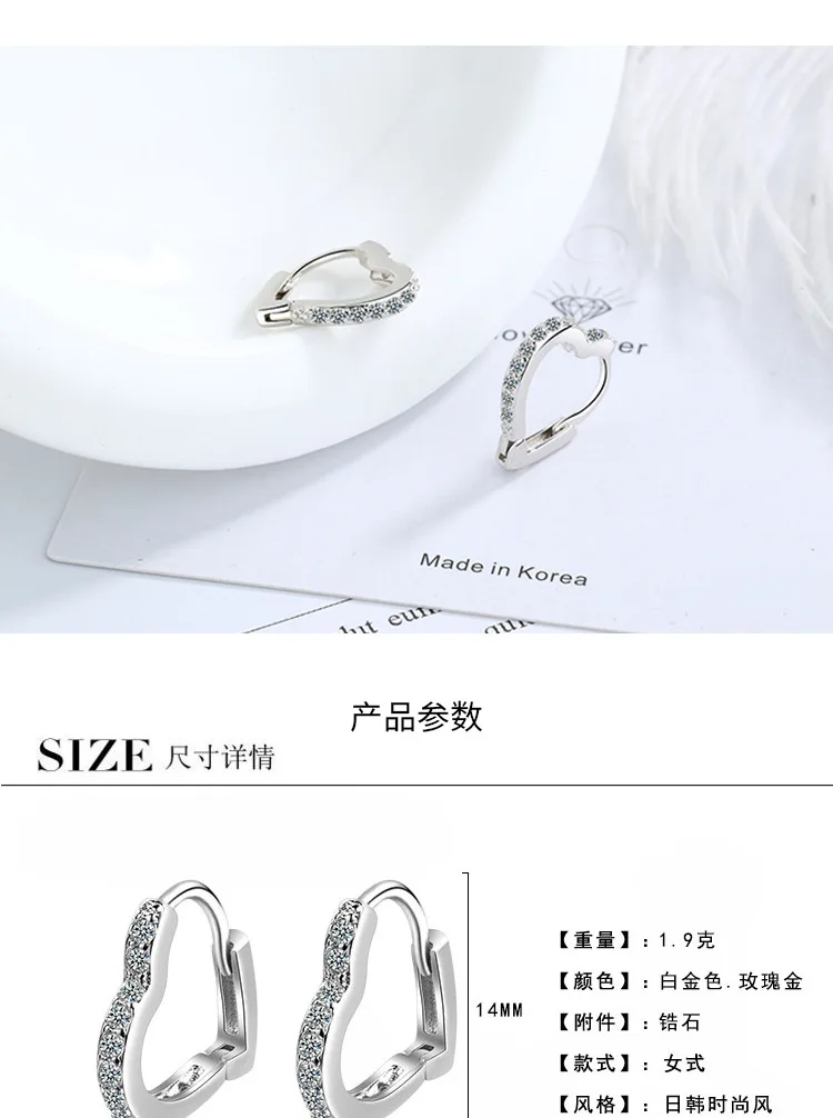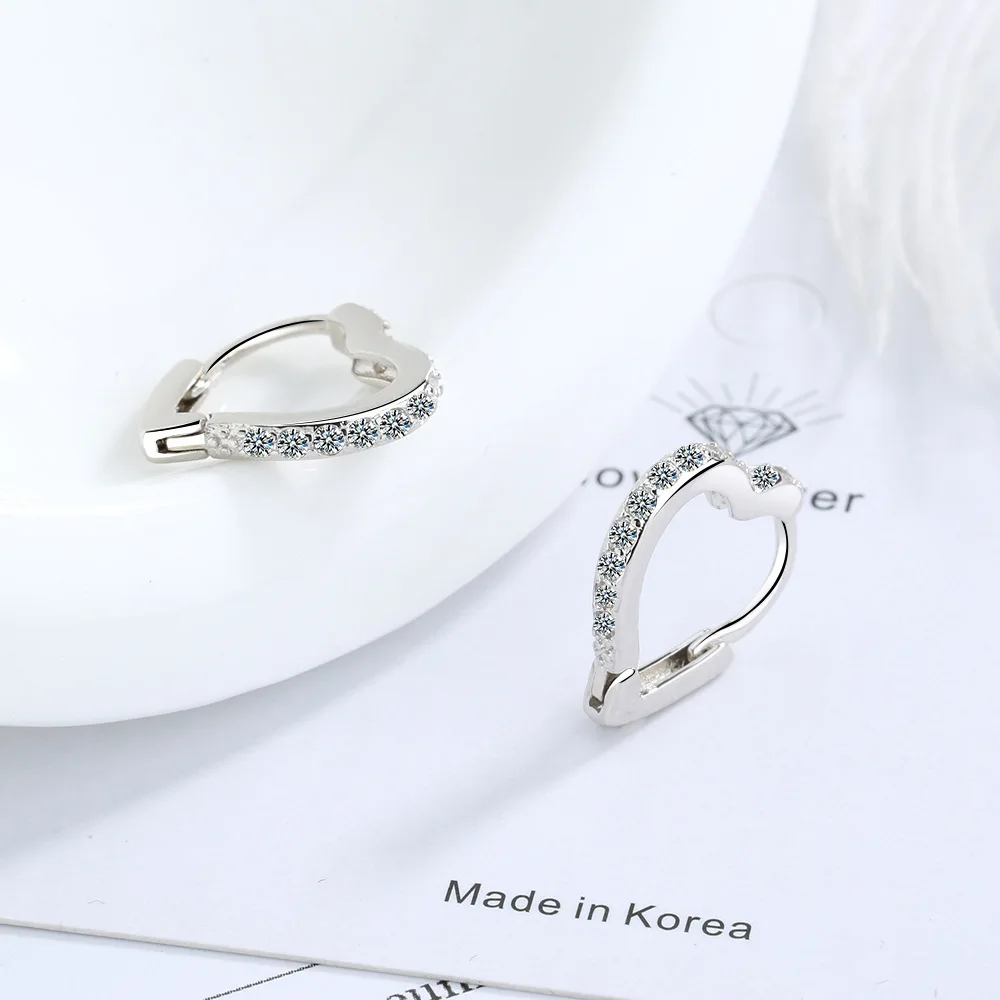 Fashion 925 Silver Clear Zirconia Lover Heart Hoop Earring For Baby...