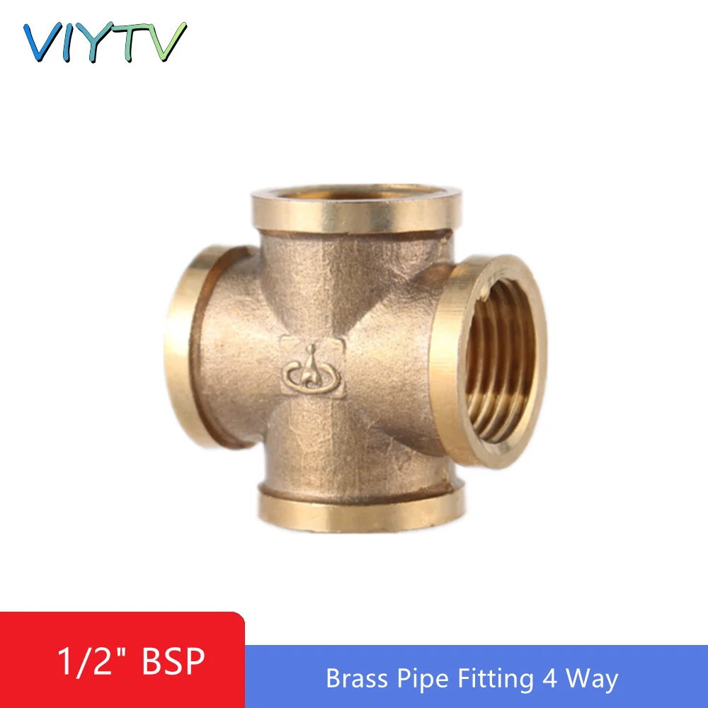 Латунный фитинг для труб 4-ходовой соединитель крест 12 дюйма Внутренняя резьба медная зазубренная Муфта переходник муфта для воды, масла, Газа