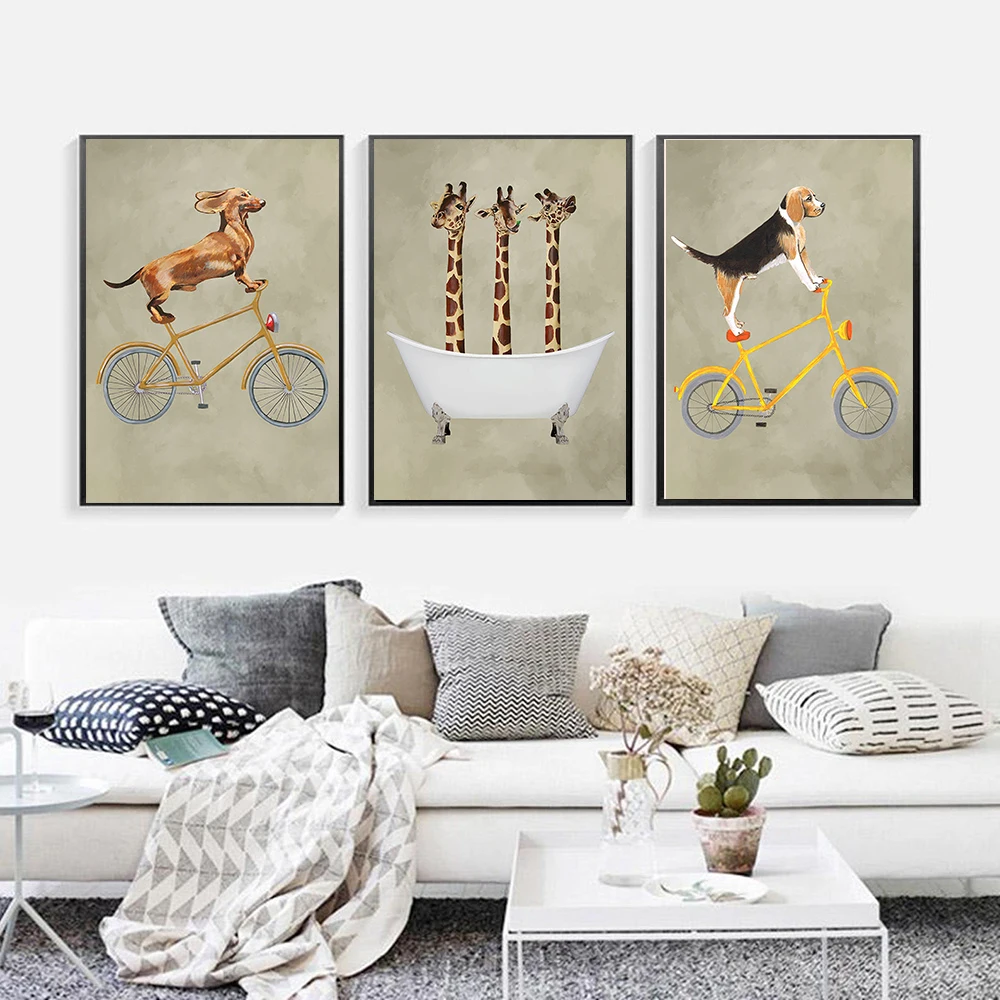 Скандинавский мультфильм Животные Печать холст Картина велосипед со...