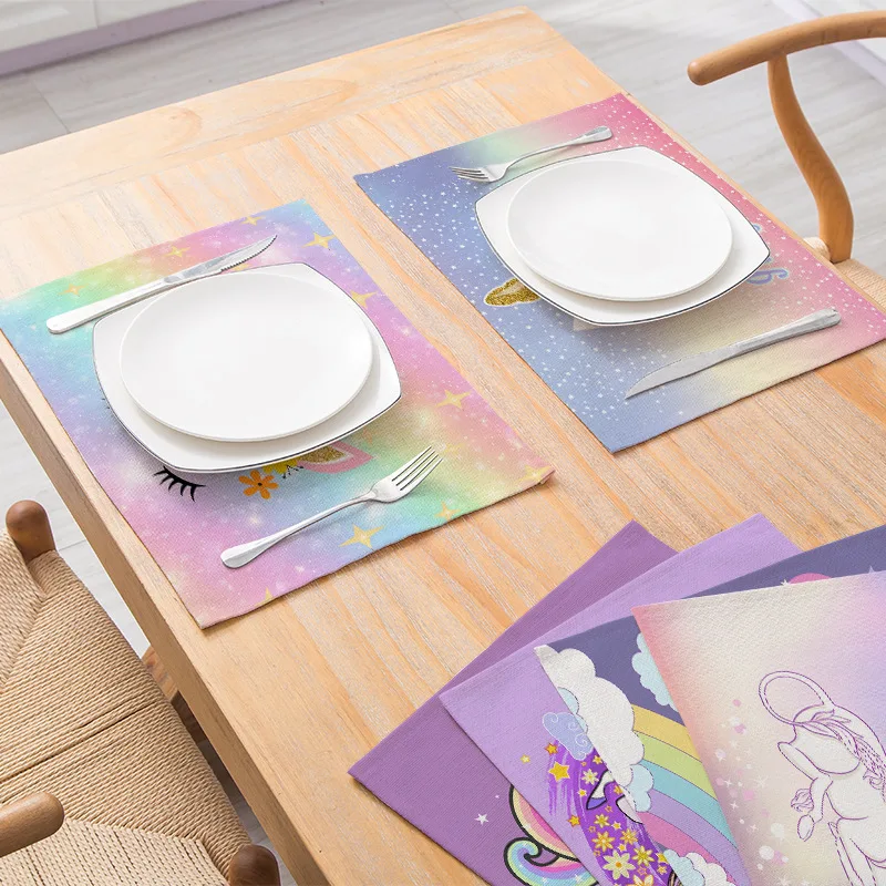 Прямоугольные салфетки для стола, из хлопка и льна, с изображением единорога, для столовой и кухни
