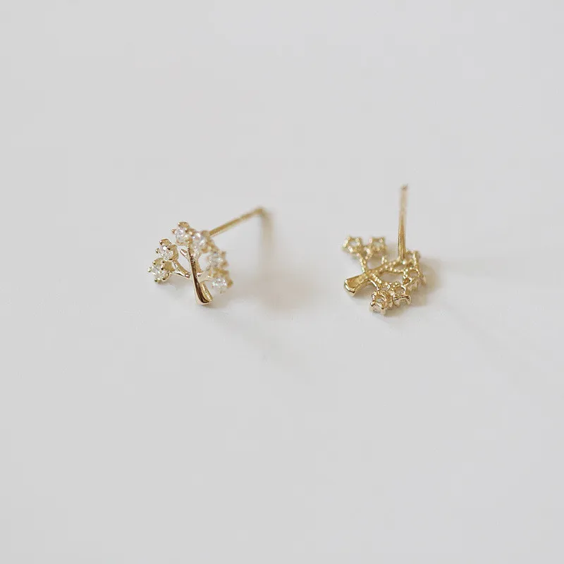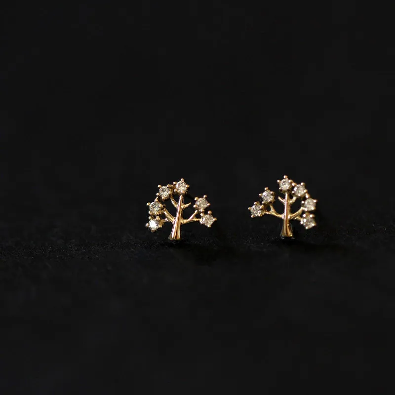 925 стерлингового серебра простой паве с украшением в виде кристаллов жизни гвоздики дерево серьги для женщин светильник класса люкс темперамент 14k позолота, ювелирное изделие, подарок