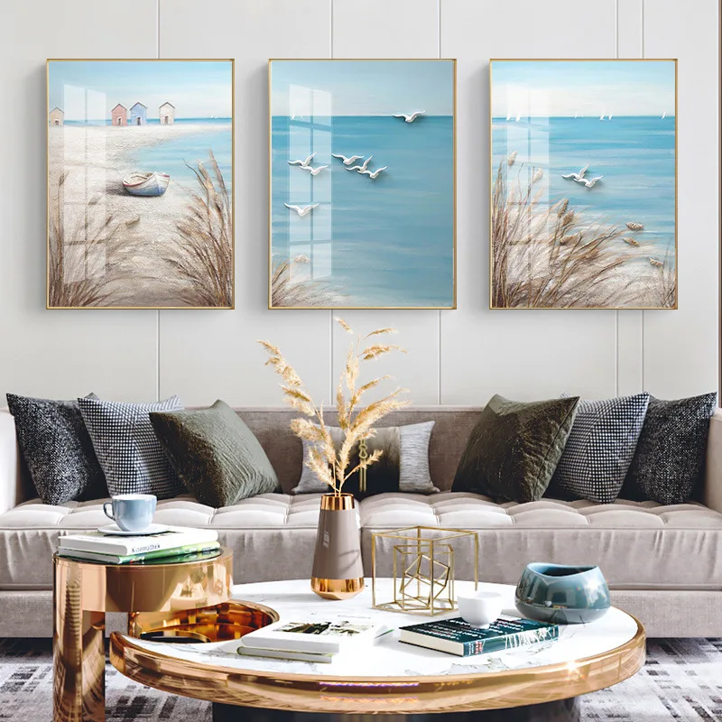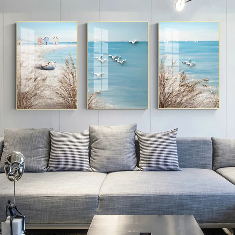 Холст для живописи Плакаты Одна деталь Wall Art простой современный европейский Искусство ручной росписью Море пляжное масло текстура пейзаж